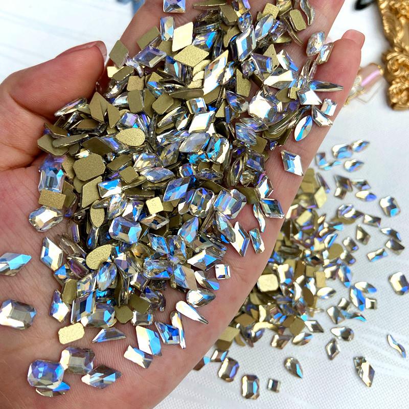 Decoración de uñas con diamantes planos, joyas superllamativas, diamantes de imitación de cristal blanco, diamantes de imitación AB para uñas, red de diamantes rojos, diamantes cuadrados con forma especial, caja de diamantes