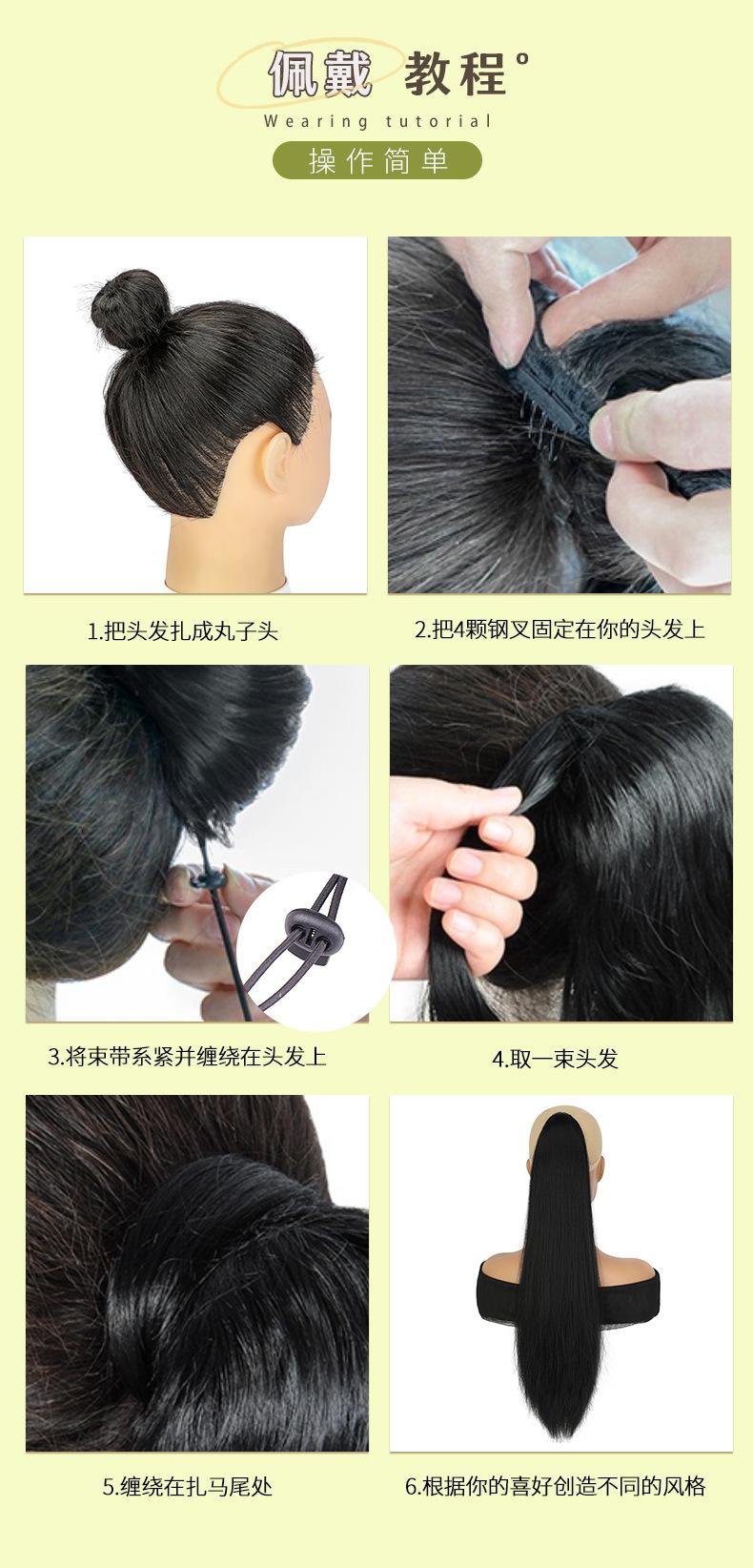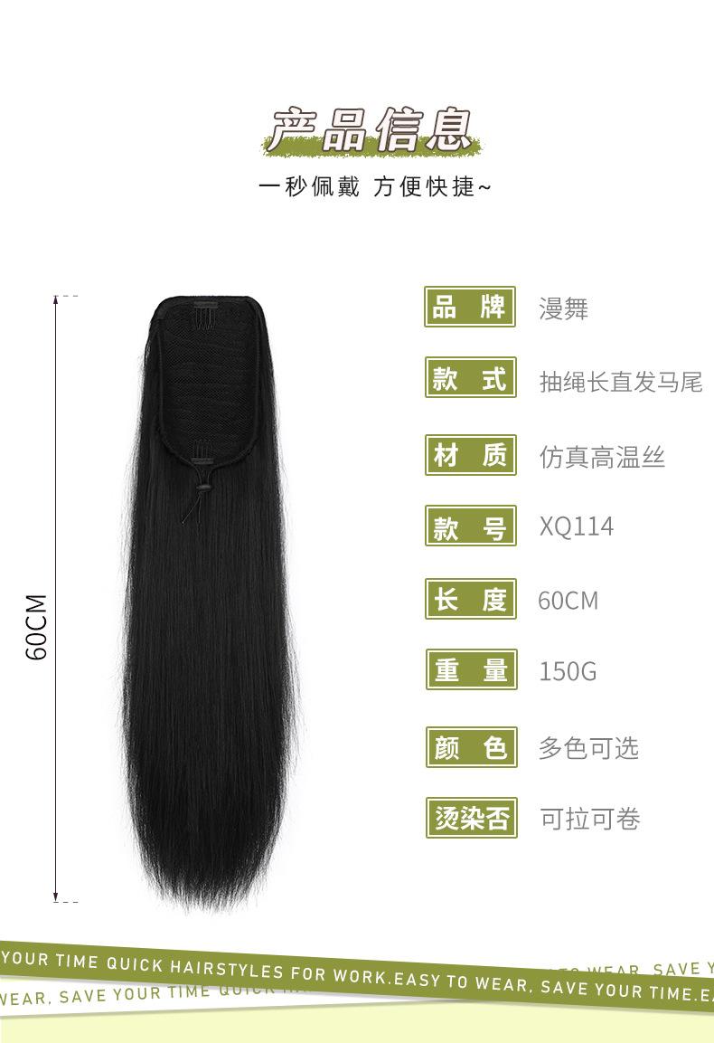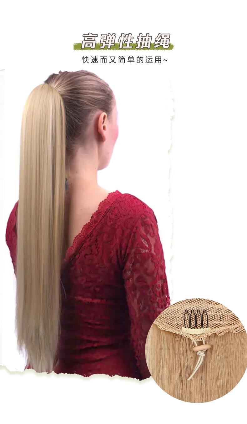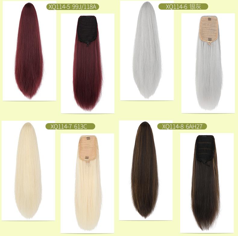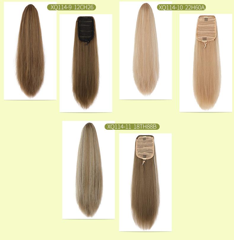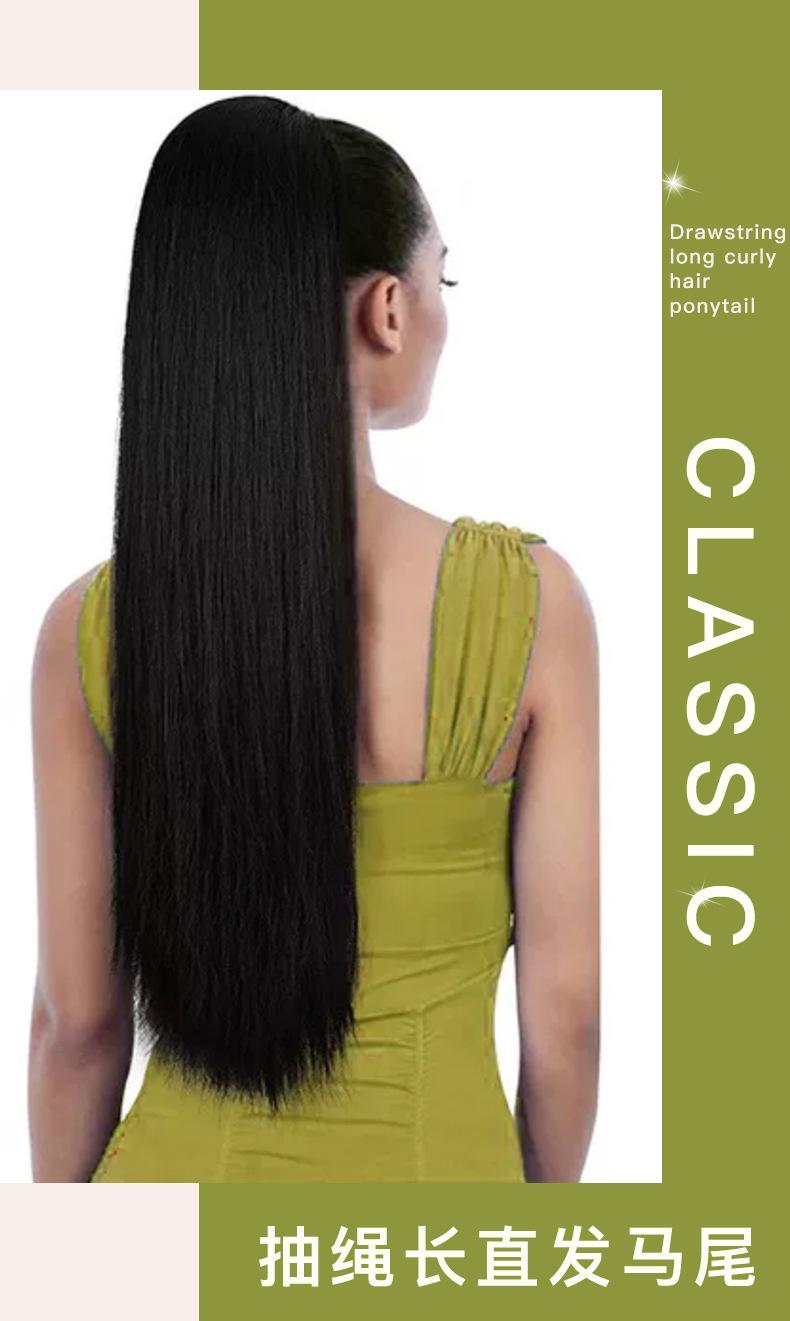 Peluca femenina transfronteriza europea y americana, cabello largo y liso, cola de caballo, cola de caballo, fibra química, cordón, fábrica de cola de caballo en stock