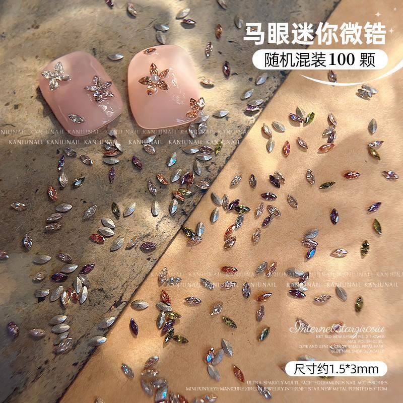 Uñas de circón mini micro circonio con base puntiaguda de colores mixtos, ojo de caballo, amor, diamante plano de forma especial, joyería de diamantes para uñas Super Flash