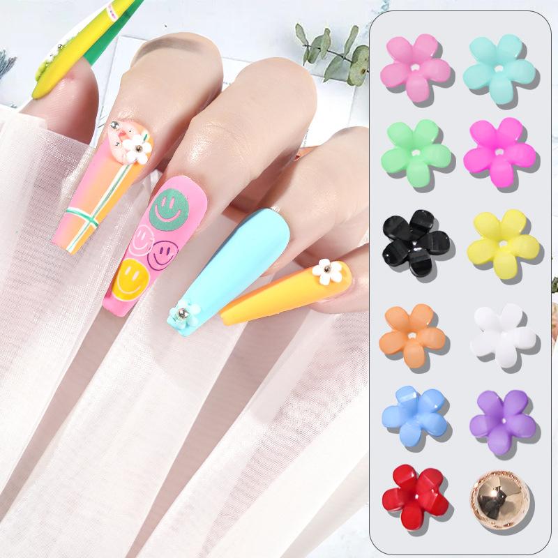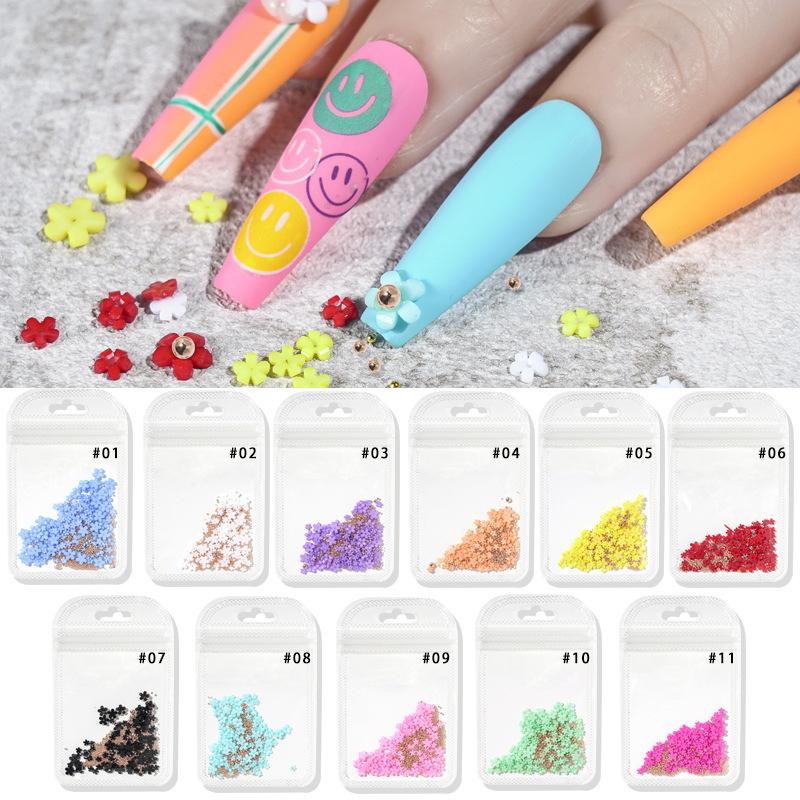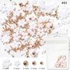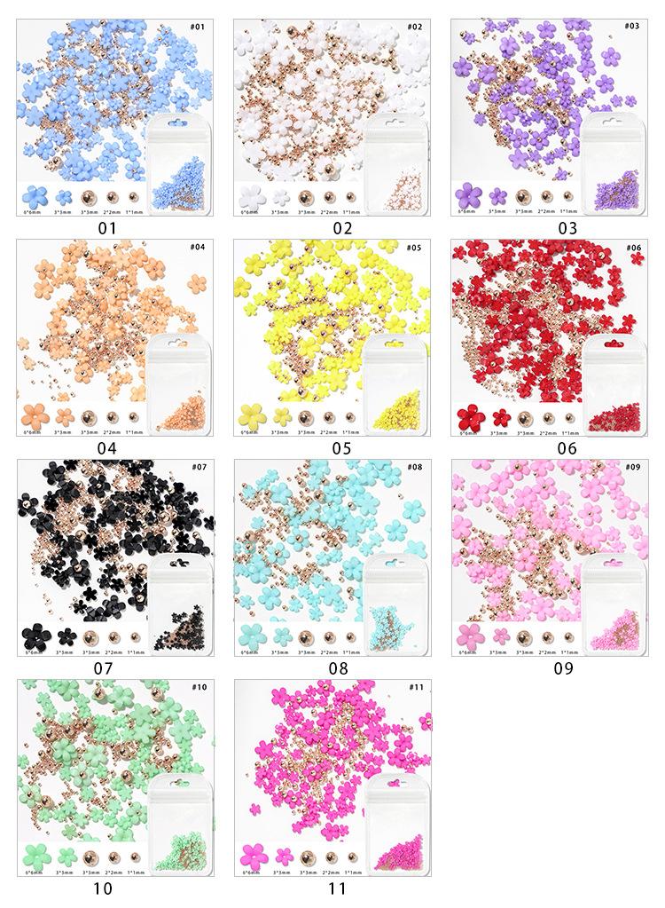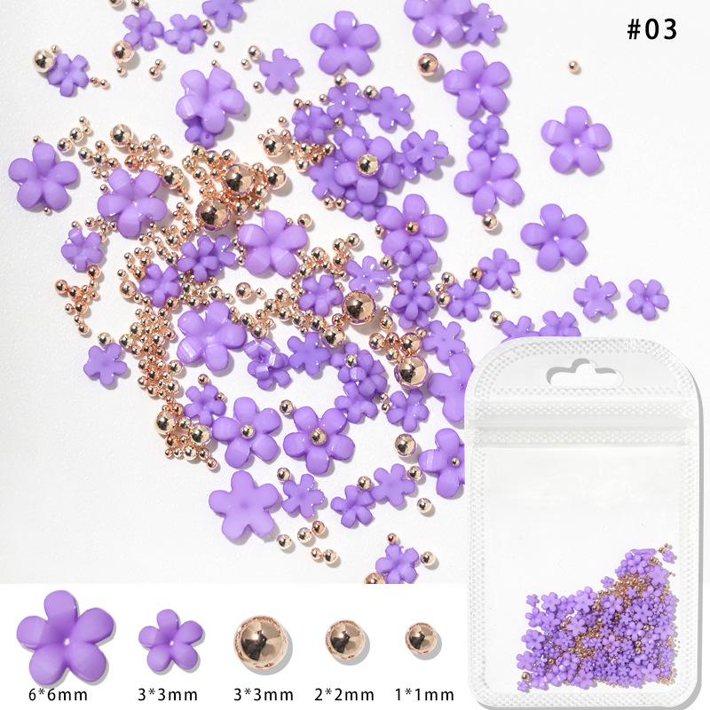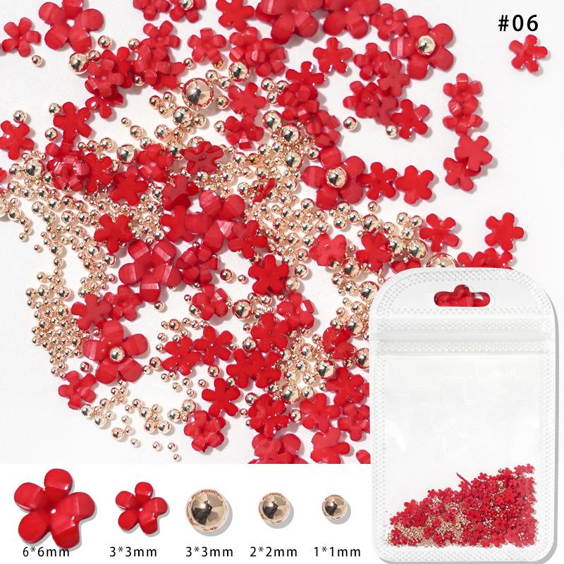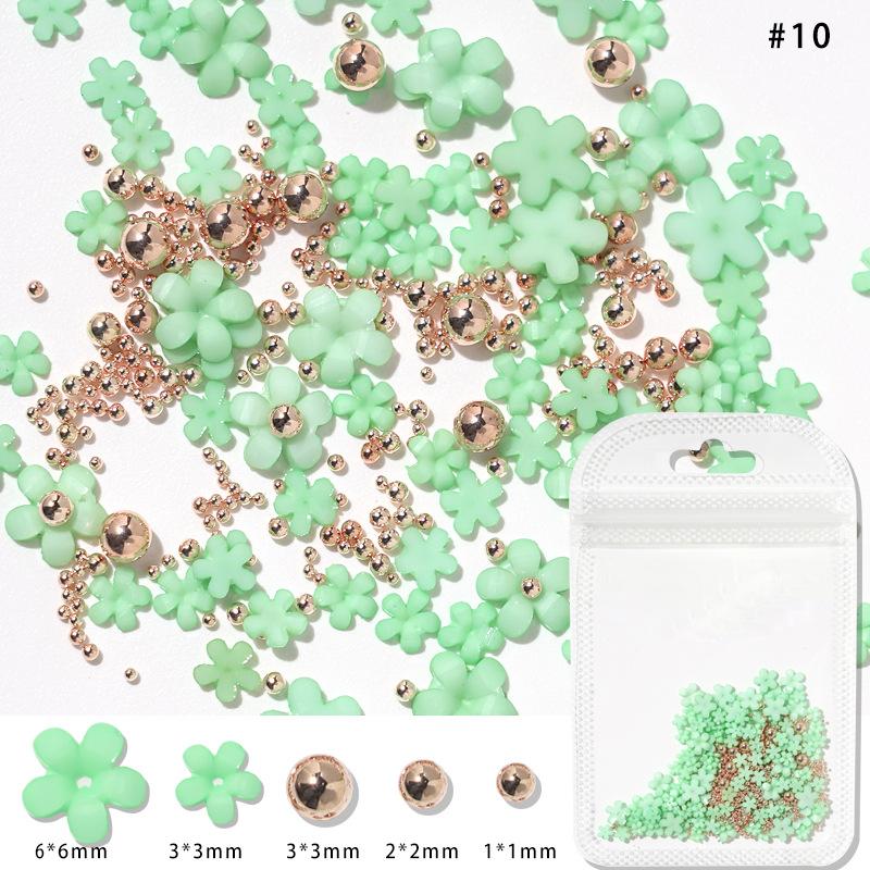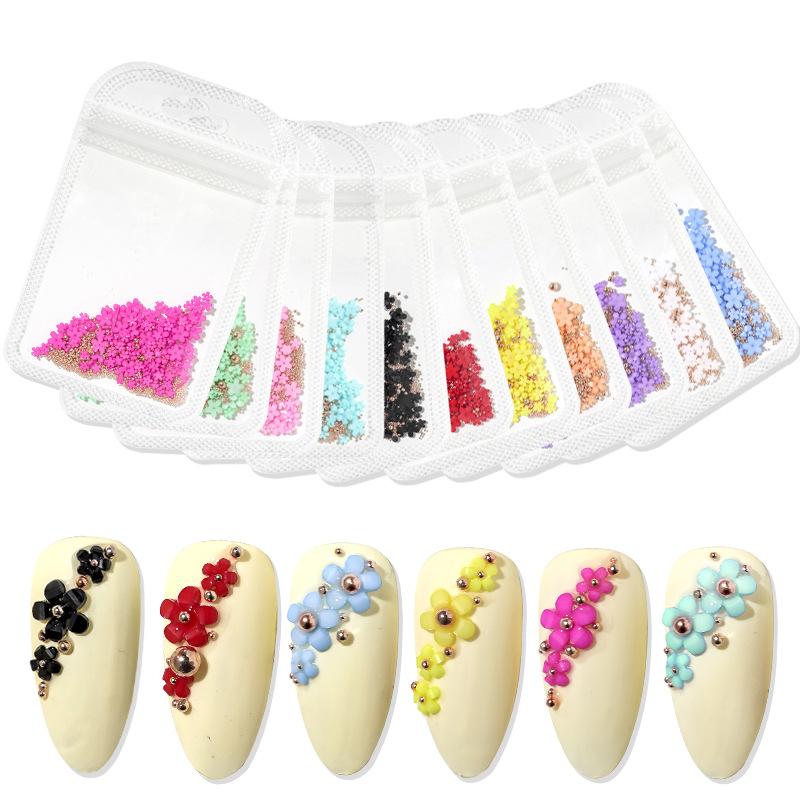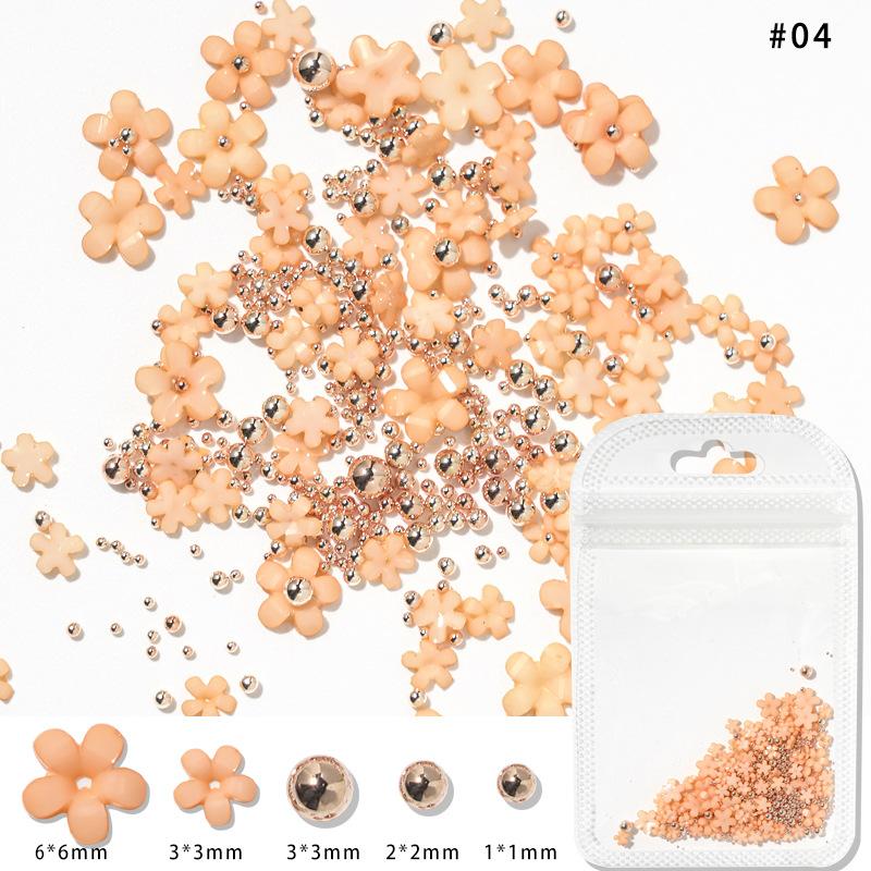Nombre del producto: Mini flor de acero con cuentas, accesorios para decoración de uñas, linda flor de diamante con cuentas doradas tridimensionales, versátil decoración de uñas con flores de cinco pétalos.