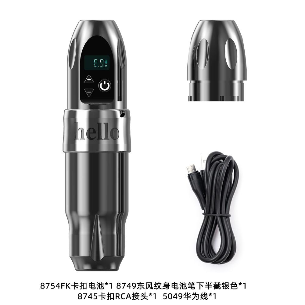Configuración:inalámbricoPluma de tatuaje+Adaptador RCA+Cable de datos USB+Bolsa de accesorios+Caja;