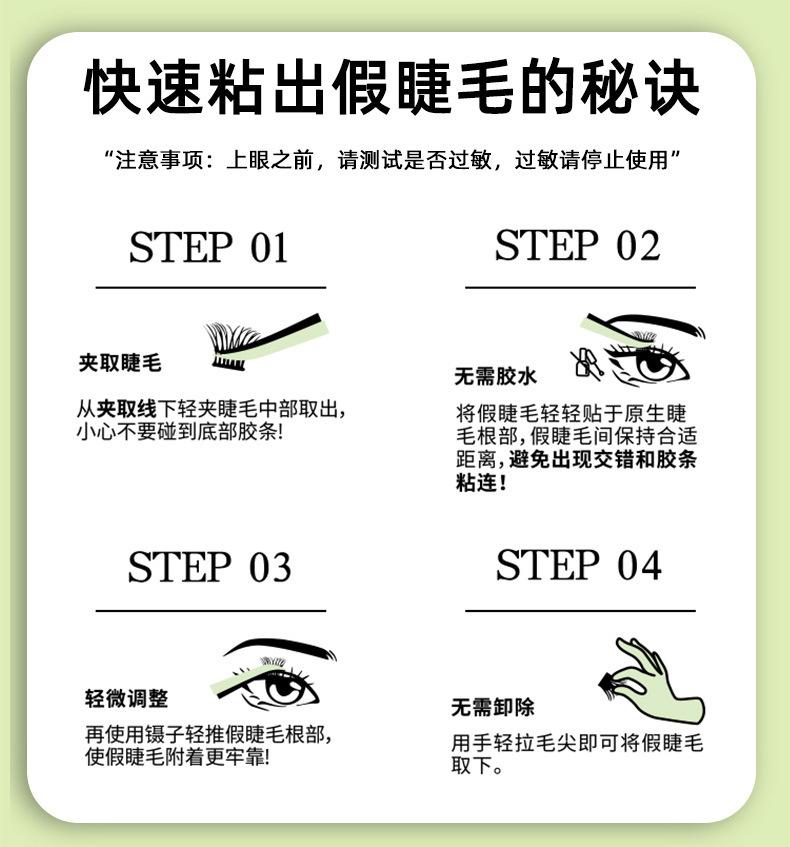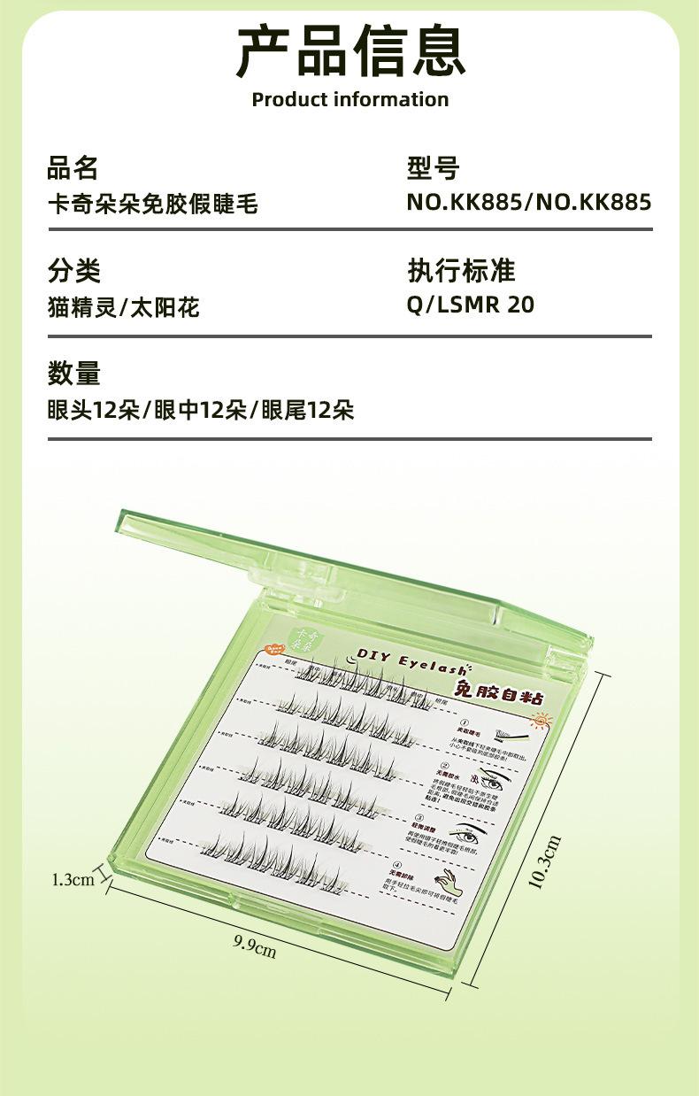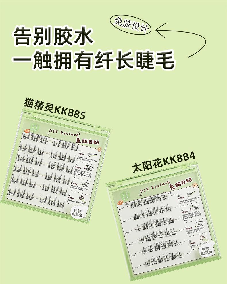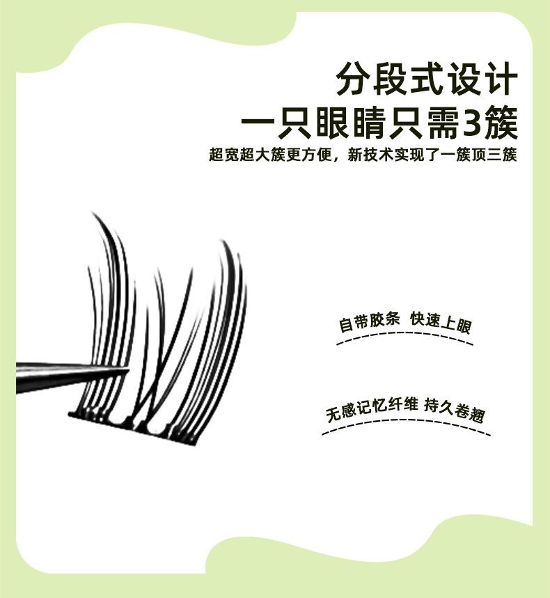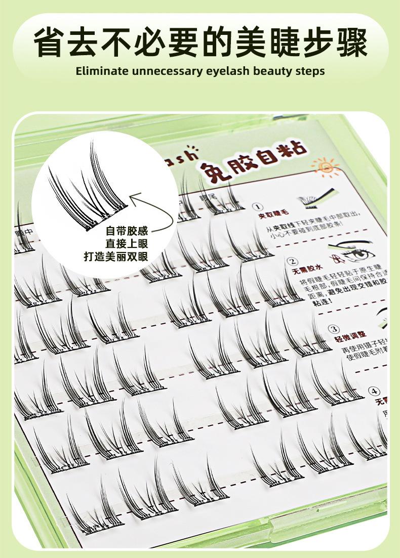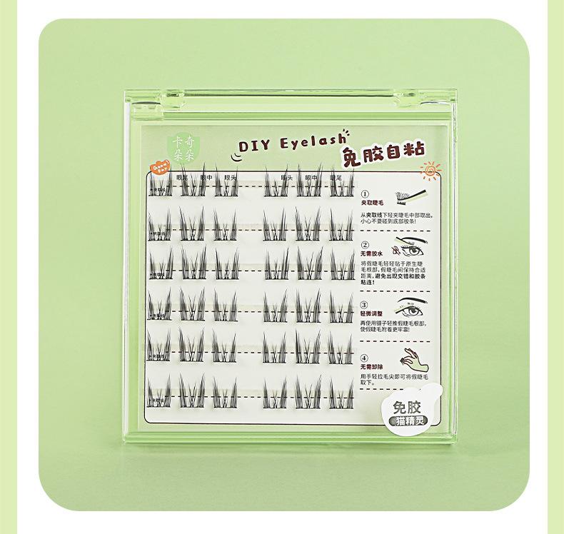 Pestañas postizas Kaqi Duoduo Lazy Trilogy, con tallos finos segmentados, para principiantes, maquillaje rápido, pestañas cómicas autoinjertadas