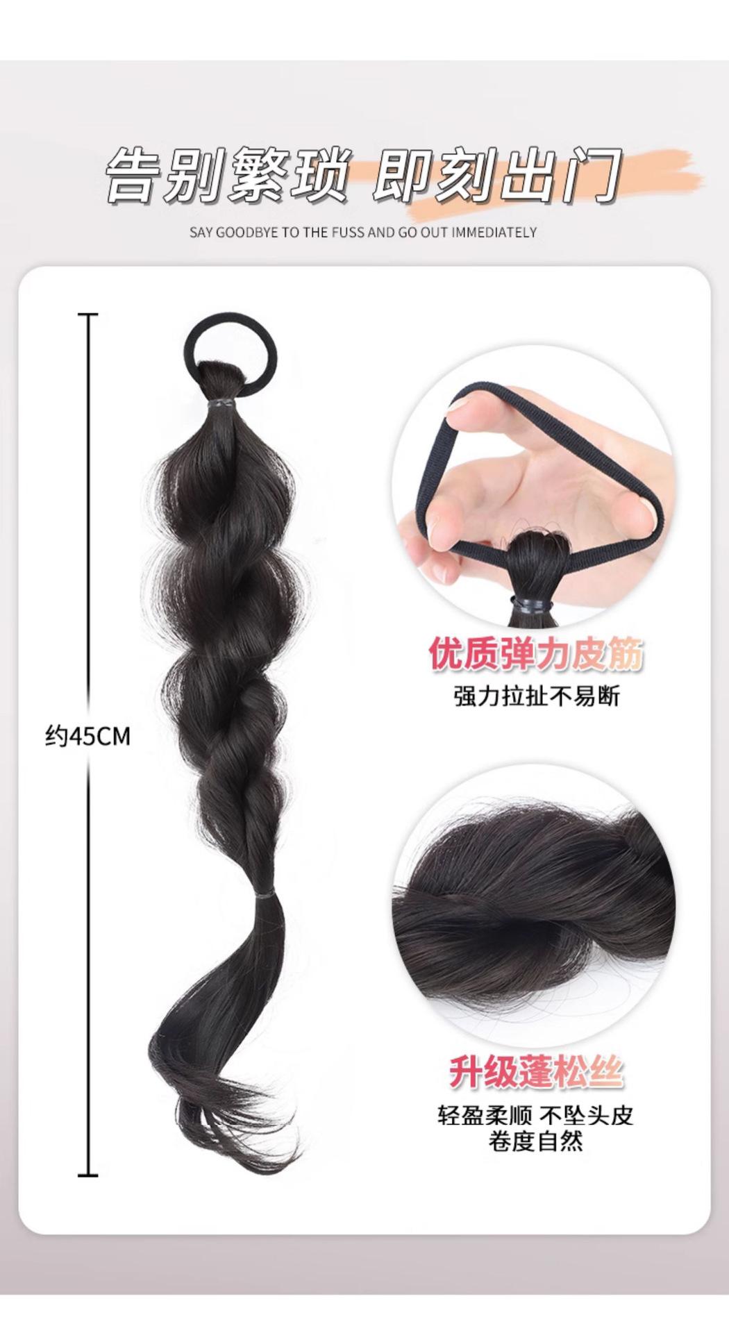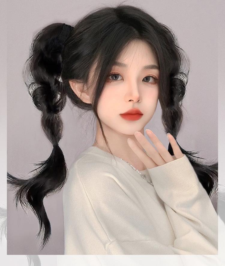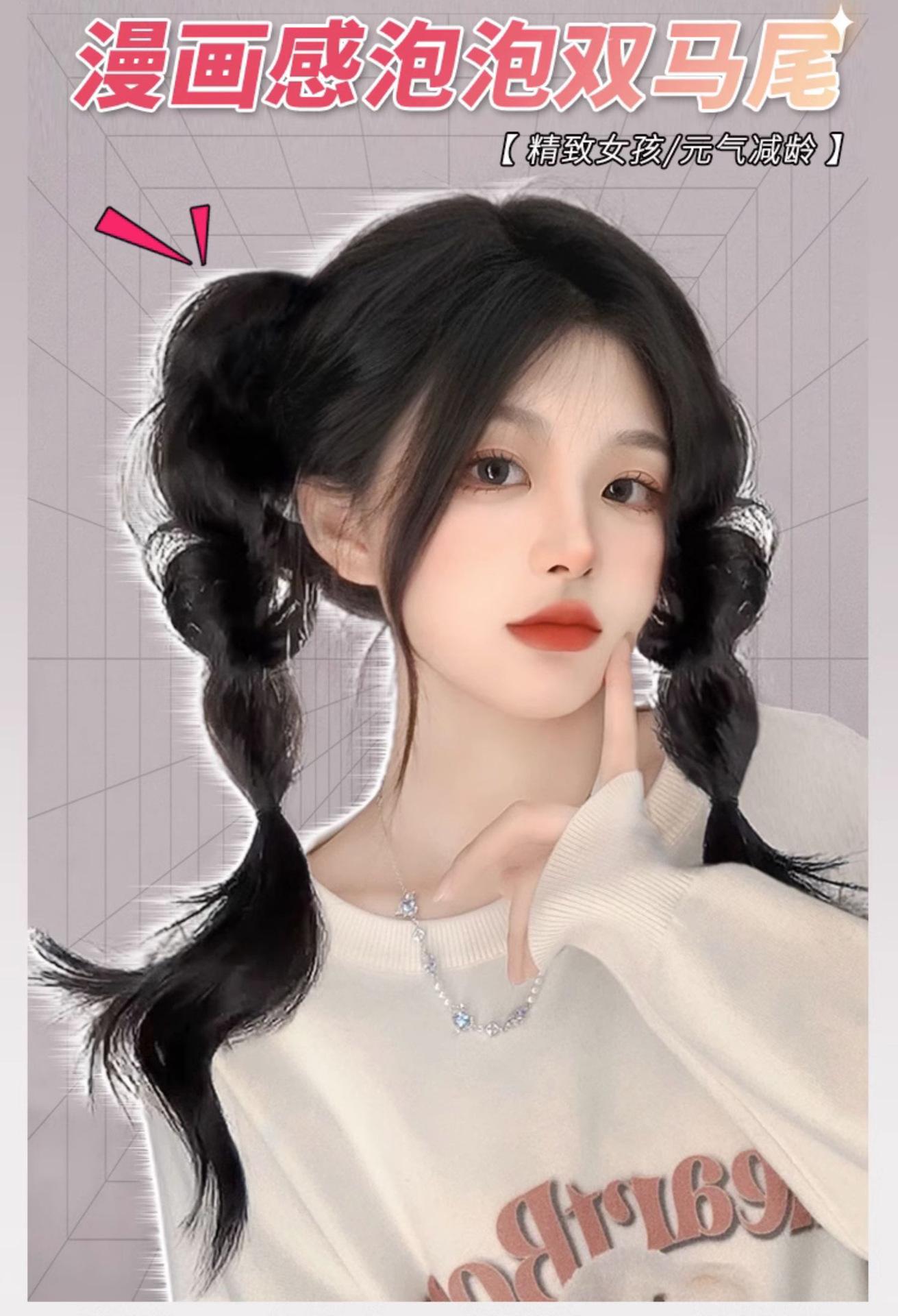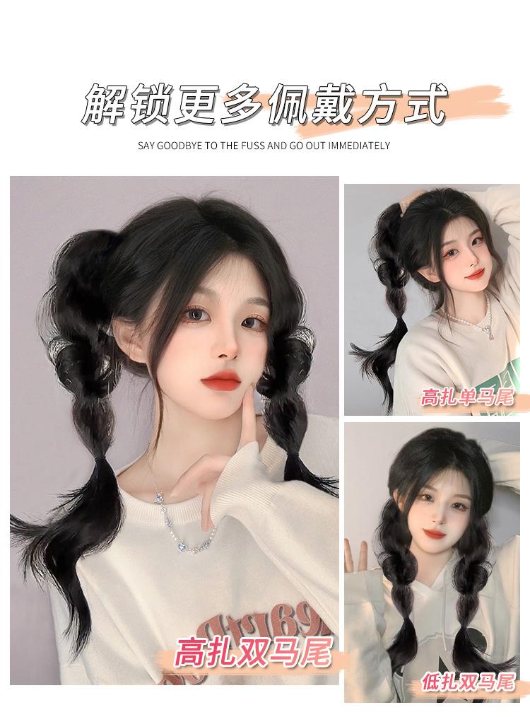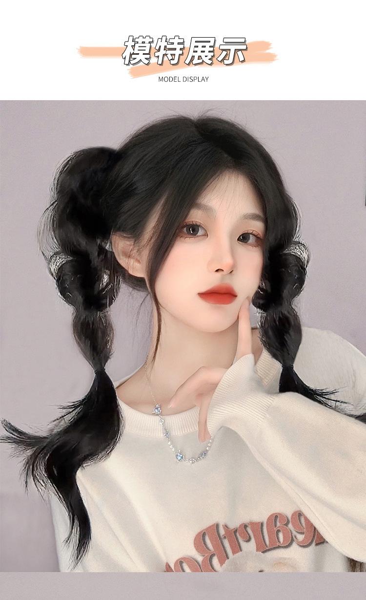 Peluca femenina con trenza de burbuja, doble cola de caballo, natural, dulce, fresca y esponjosa, simulación de cabello, trenza torcida, cola de caballo falsa