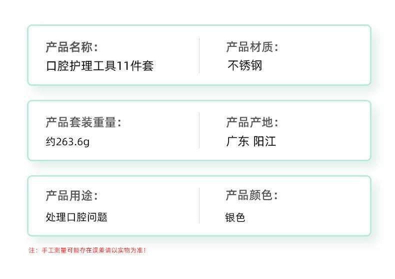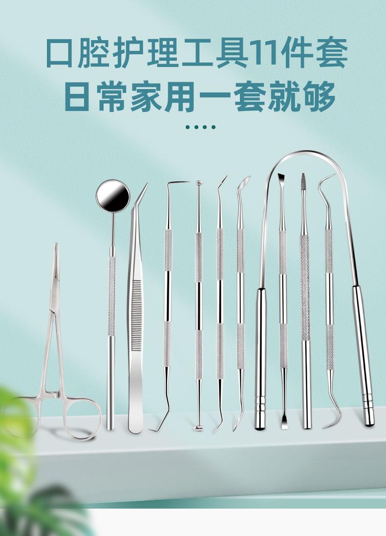 Nueva herramienta de acero inoxidable para el cuidado dental, juego de 11 piezas, sonda de limpieza de cálculo dental, espejo bucal, herramienta dental