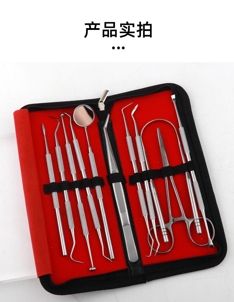 Oral tools 11 piece set [leather set]], Oral cavity mirror, 7-character hook needle, Dental bone hammer, Sickl...