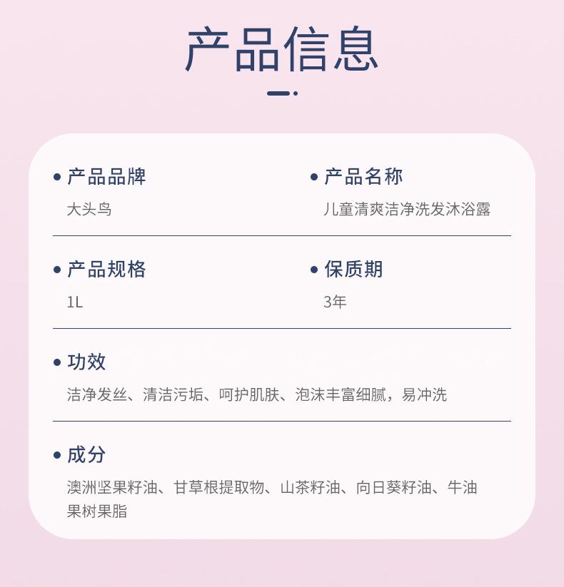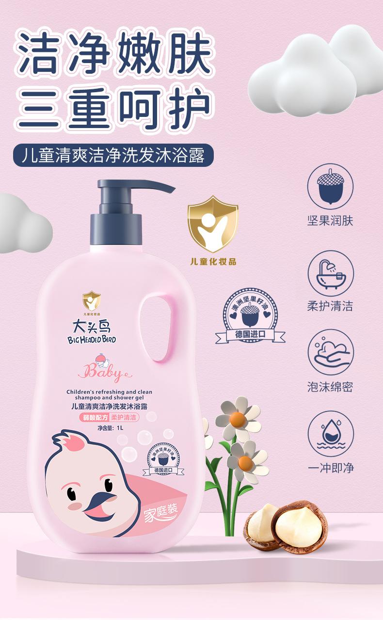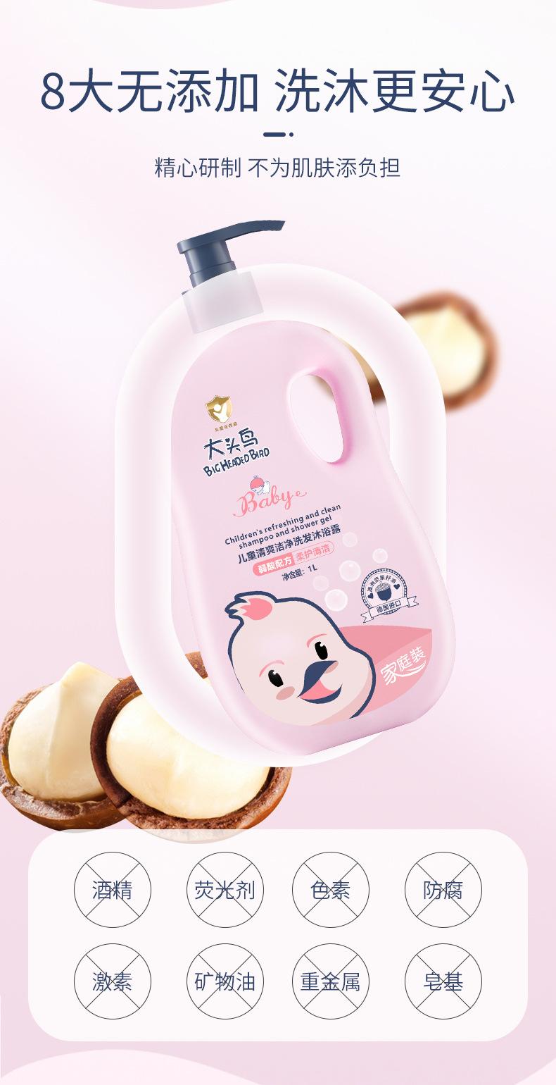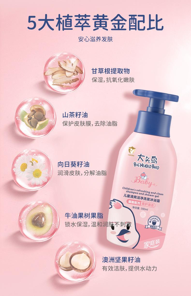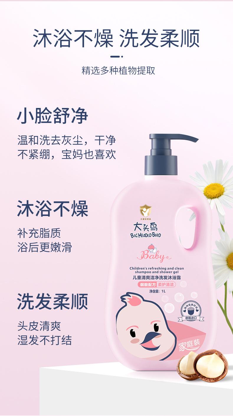Champú Limpiador Refrescante para Niños Big Head Bird y Gel de Ducha Jabón para Bebé Dos en Uno Fórmula de Ácido Débil Champú para Niños