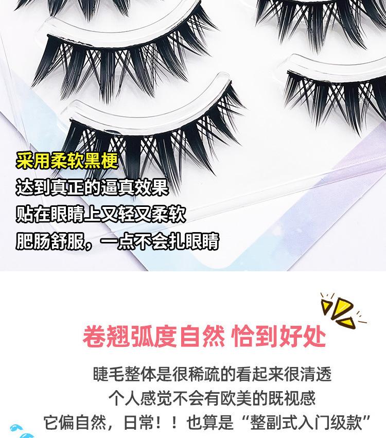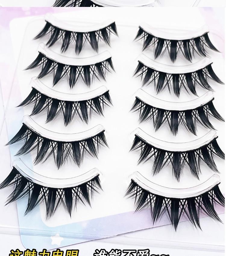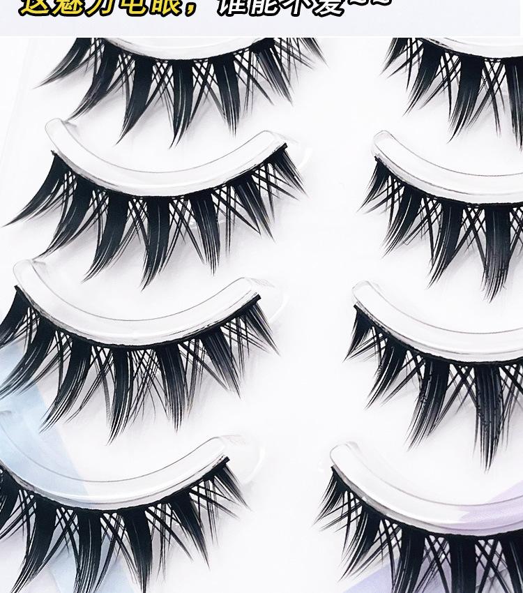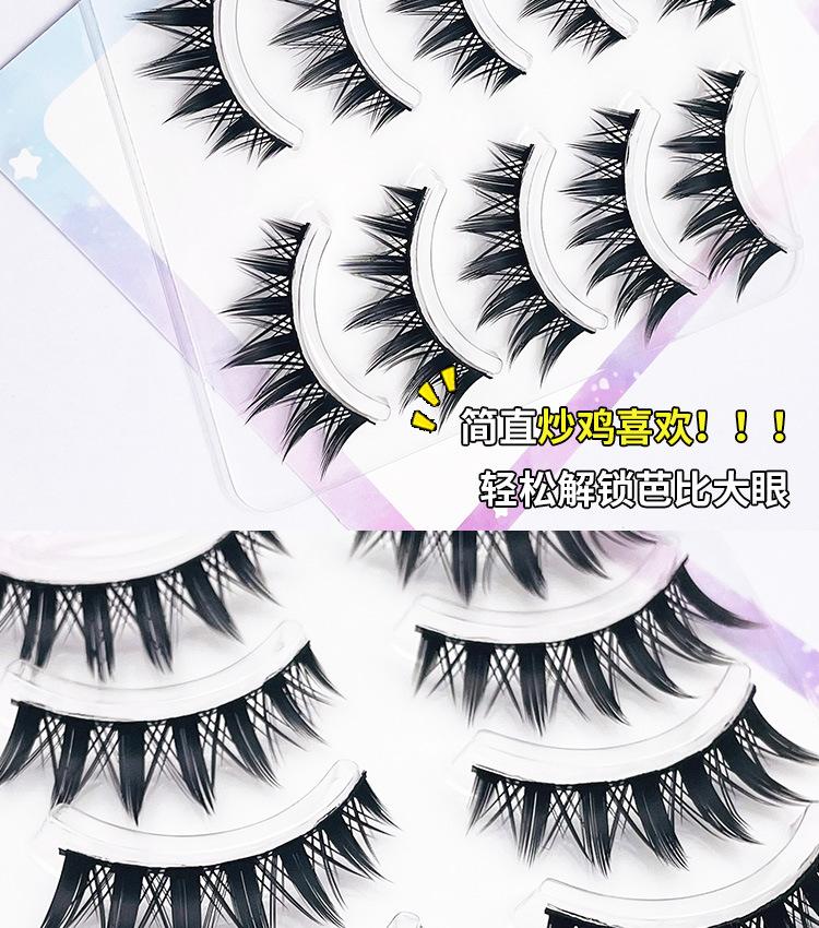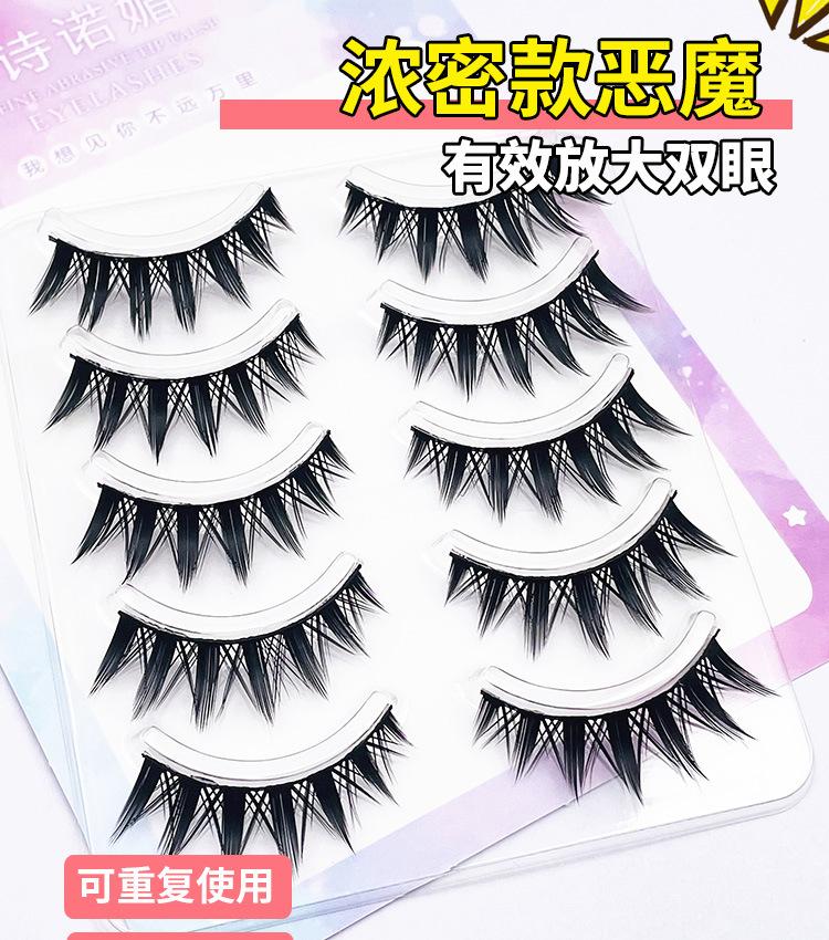 5 pares de pestañas postizas gruesas de diablillo, pieza entera de maquillaje europeo y americano ligero, pestañas de tallo negro Barbie suaves