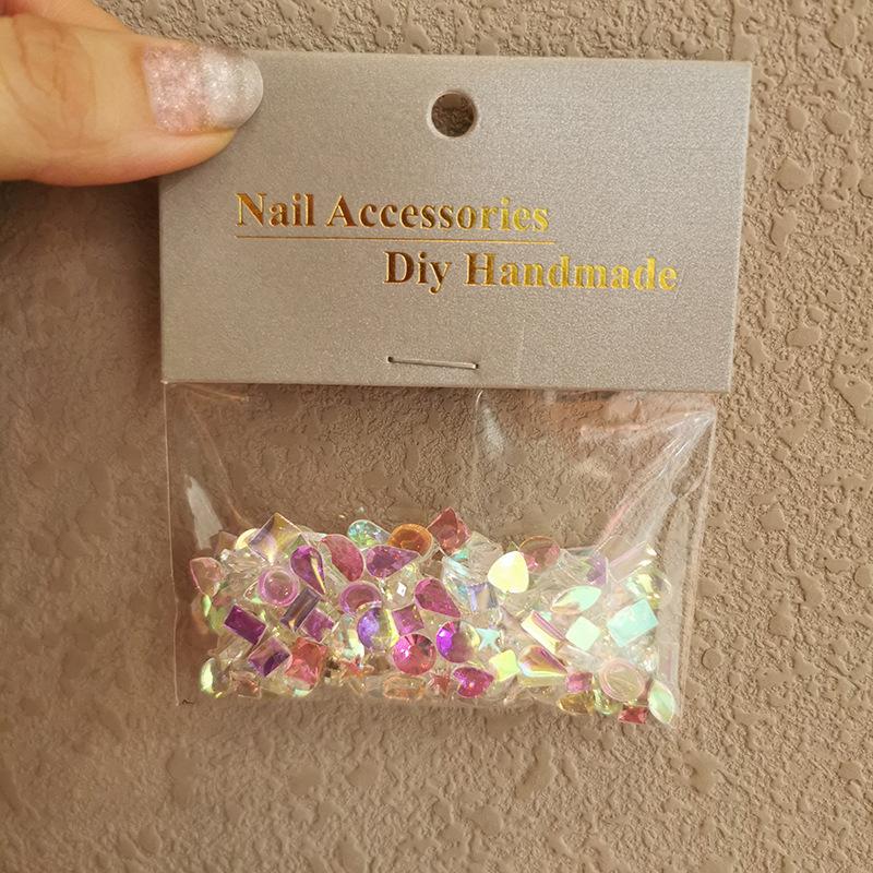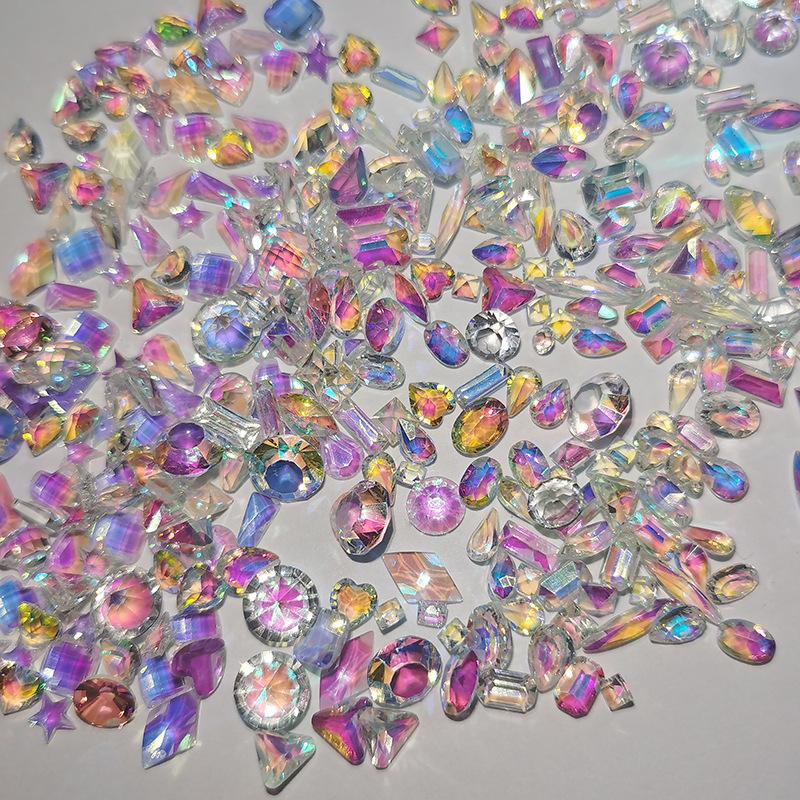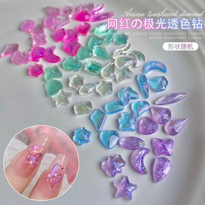 Estilo popular de la celebridad de Internet Wen Jingling Aurora, arte de uñas de color transparente, joyería de uñas de diamante, accesorios de uñas de color fantasía de fondo plano, venta al por mayor mixta
