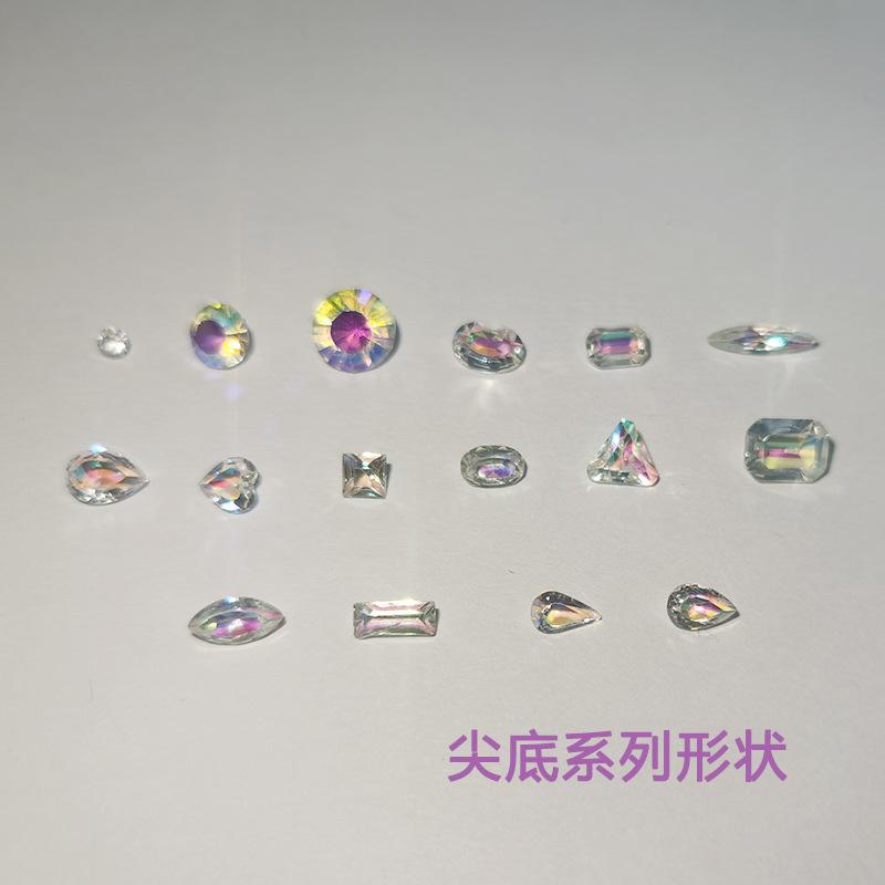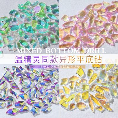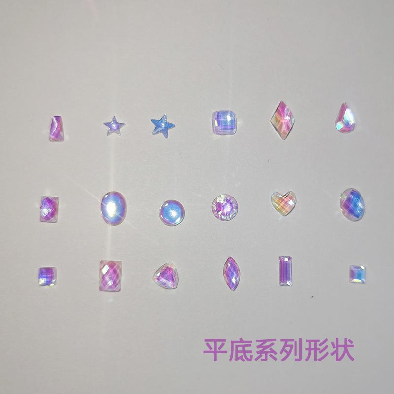 Wen Jingling, mismo estilo de arte de uñas, diamante aurora, especial, base plana, 9 colores, accesorios para uñas de diamante, joyería de arte de uñas de diamante de vidrio al por mayor