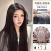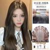 [Sal marina con queso] Peluca femenina con flequillo dividido en medio, degradado azul platino, en capas, teñida, natural, conjunto completo