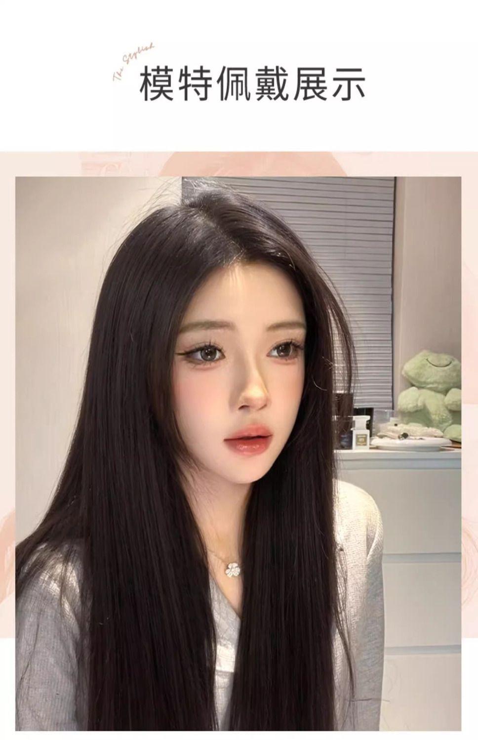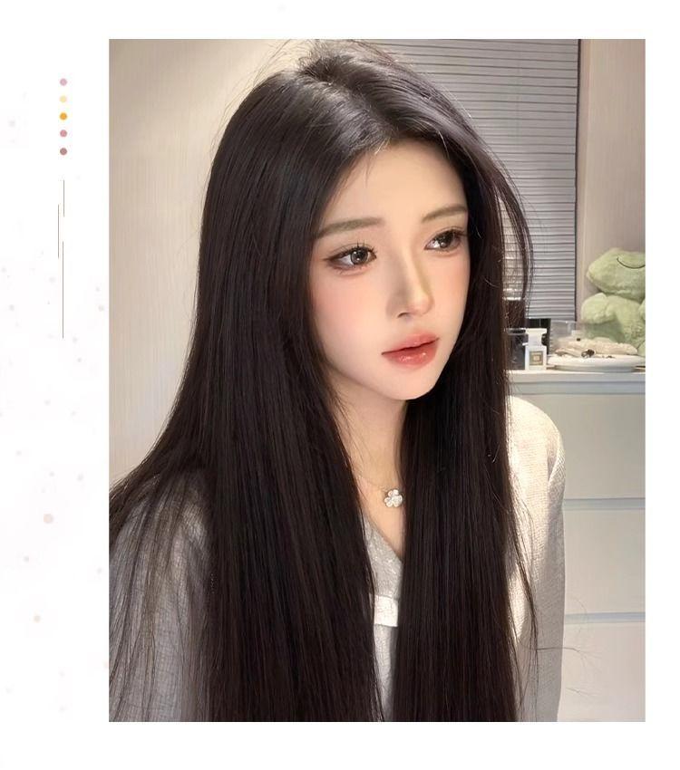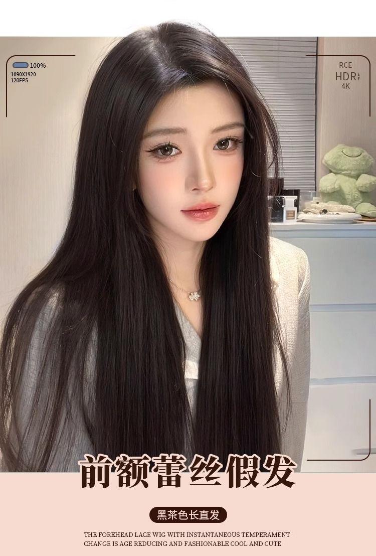 Lace long straight hair [black brown] hair net, Lace long straight hair [black brown] care seven-piece set, La...