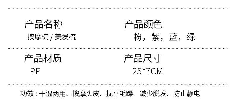 Peine de masaje con cojín de aire de color de moda para cabello largo y liso, peine elástico con memoria, peine antiestático, disponible en stock, suministro directo.
