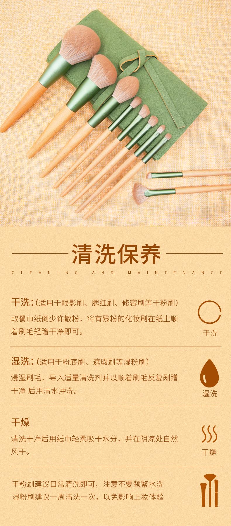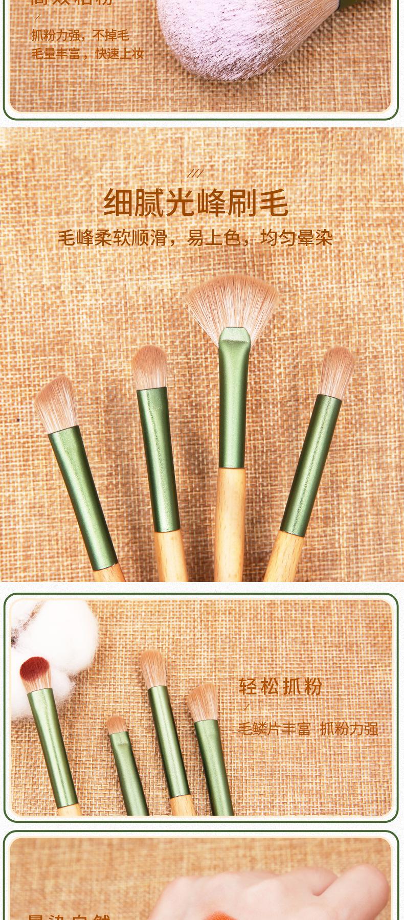Green Rose 10 Cosmetic Brush Set, Qingluo 10 cosmetic brush set + bag, Green Rose 10 Cosmetic Brush + Tube