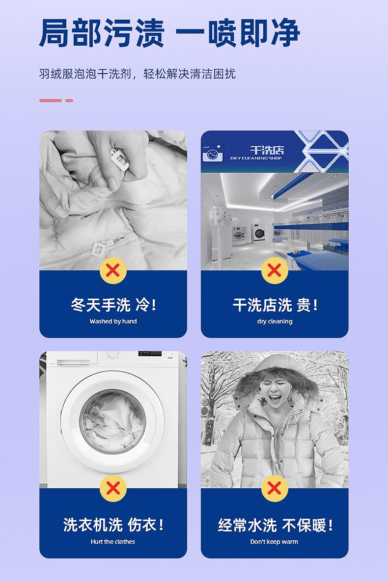 Agente de limpieza en seco para chaquetas de plumas, espuma doméstica sin agua, agente de limpieza para quitar manchas de ropa, agente de limpieza para chaquetas de plumas