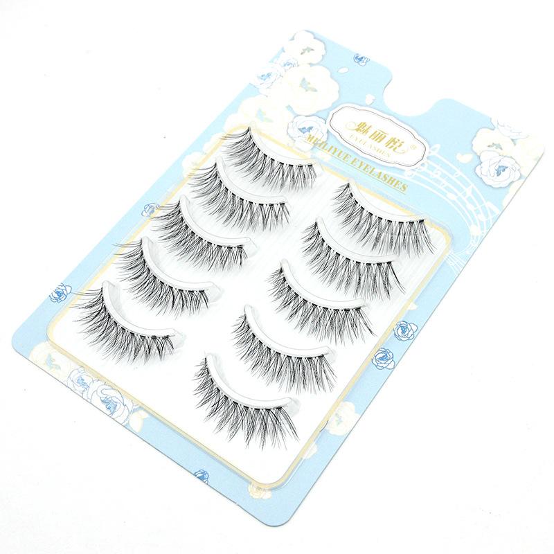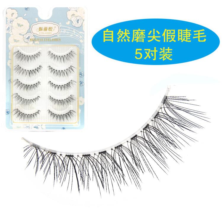 Pestañas postizas afiladas estilo japonés W-52, 5 pares de pestañas postizas largas con cola de ojo de simulación natural y tallo transparente