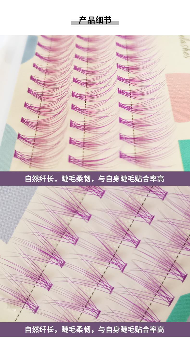 Pestañas postizas naturales autoinjertadas de color, un solo grupo, pelo de Barbie grueso, 10 pestañas postizas suaves de color púrpura