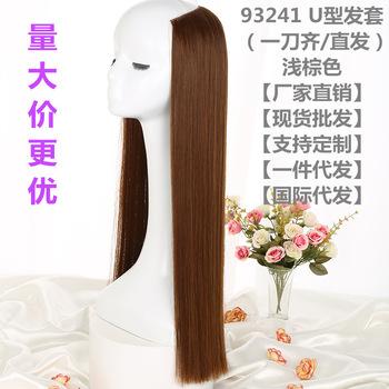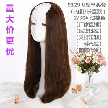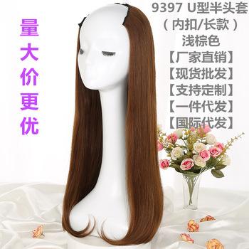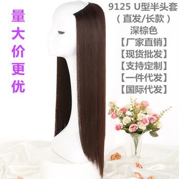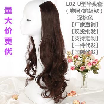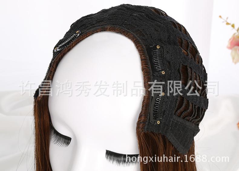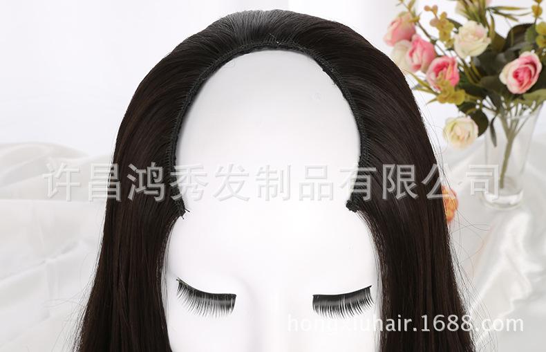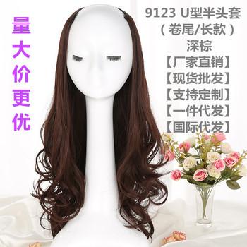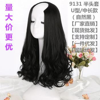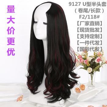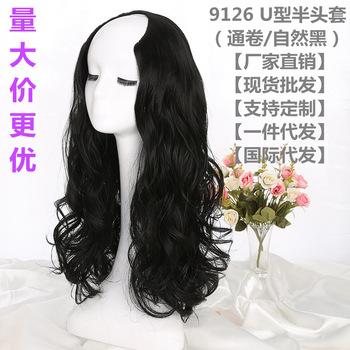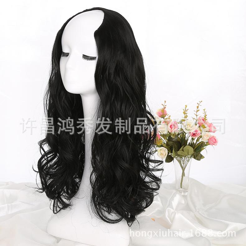 Nombre del producto:Peluca para mujer, cabello largo y rizado, con ondas grandes, en forma de U, peluca de media cabeza, peluca de fibra sintética completamente rizada.
