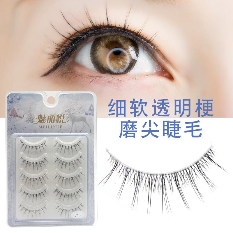 711 Liyue - Pestañas postizas nuevas, 5 pares, afiladas, de una sola línea, transparentes, con forma de cruz natural, de hada