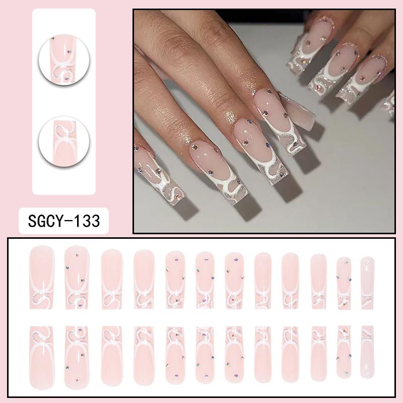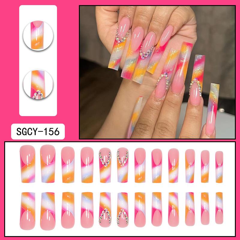 O4 Estilo europeo y americano: uñas postizas largas, parches para uñas, uñas postizas, uñas postizas con acabado.