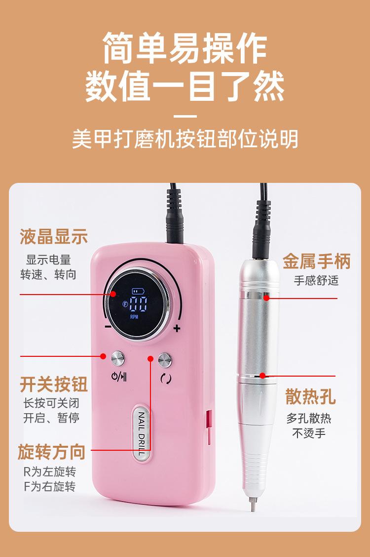 Pulidor de Uñas 45000 Rpm Especial Salón de Uñas Pulidor de Uñas Recargable Herramienta de Manicura para Piel Muerta