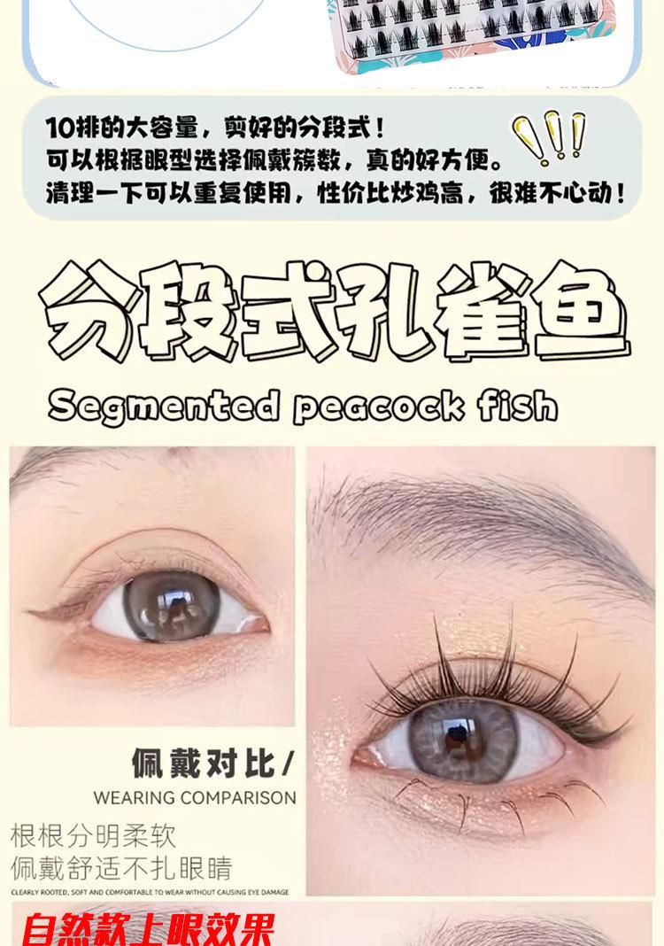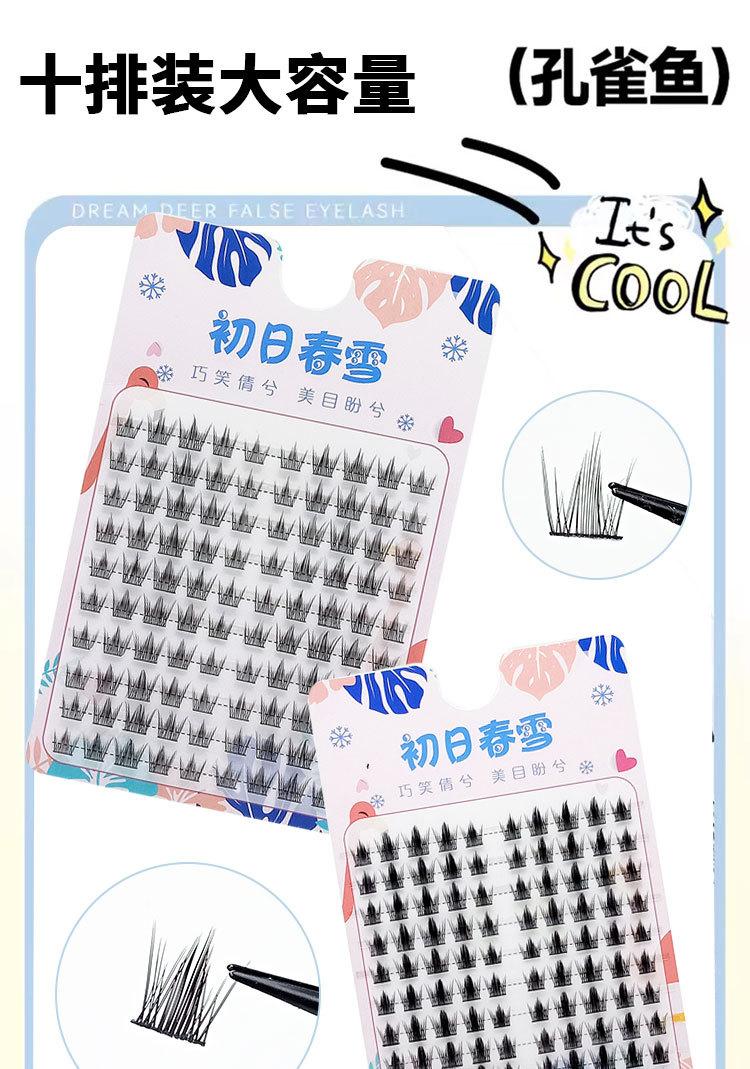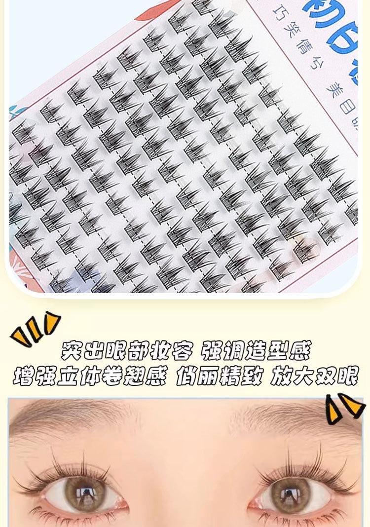Pestañas postizas Guppy de gran capacidad, gruesas y naturales, de un solo grupo, segmentadas, con espejo de dibujos animados en trilogía.