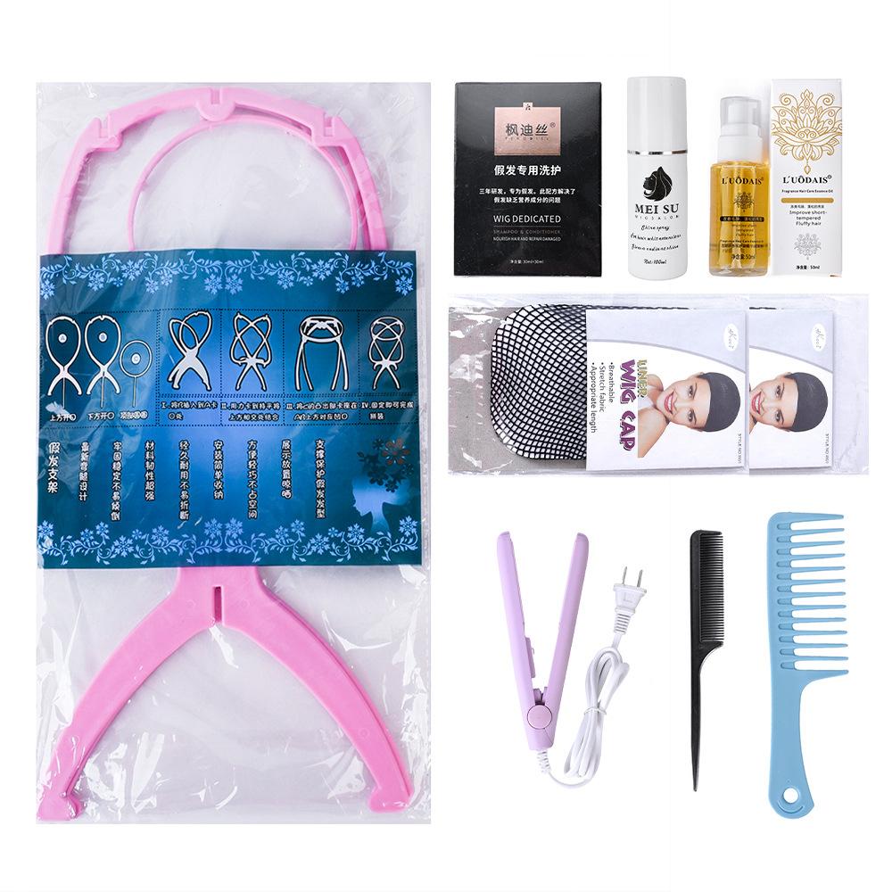 Set de cuidado de pelucas Solución de cuidado Peine pequeño de acero Soporte de peluca de plástico Clip de peine de bolsa de aire Cuidado de pelucas grandes
