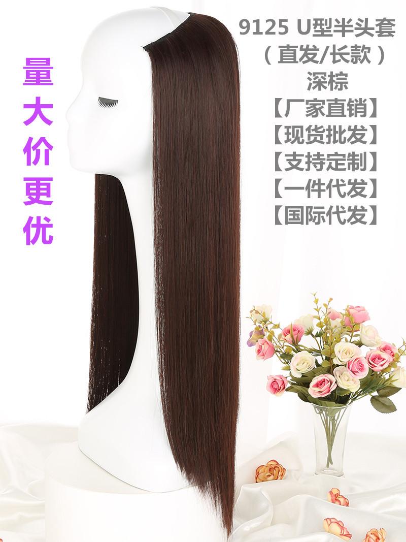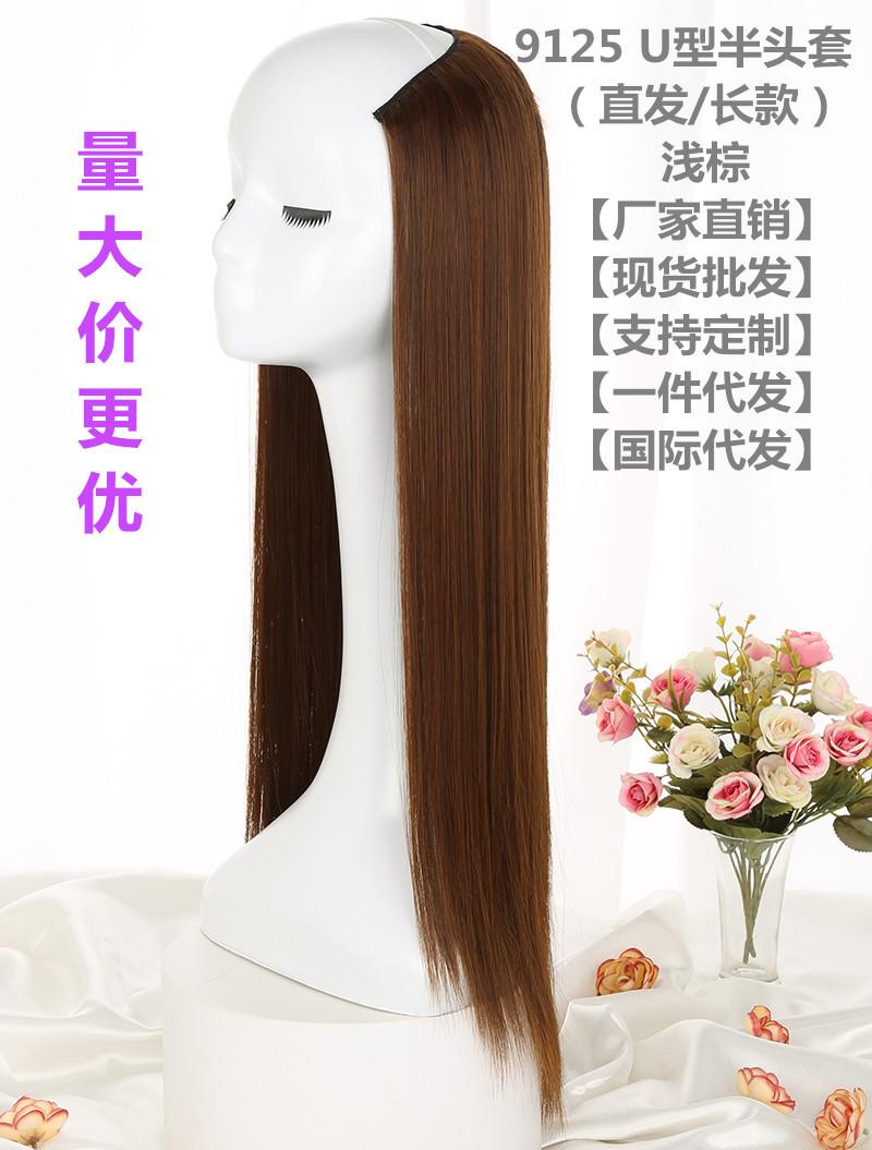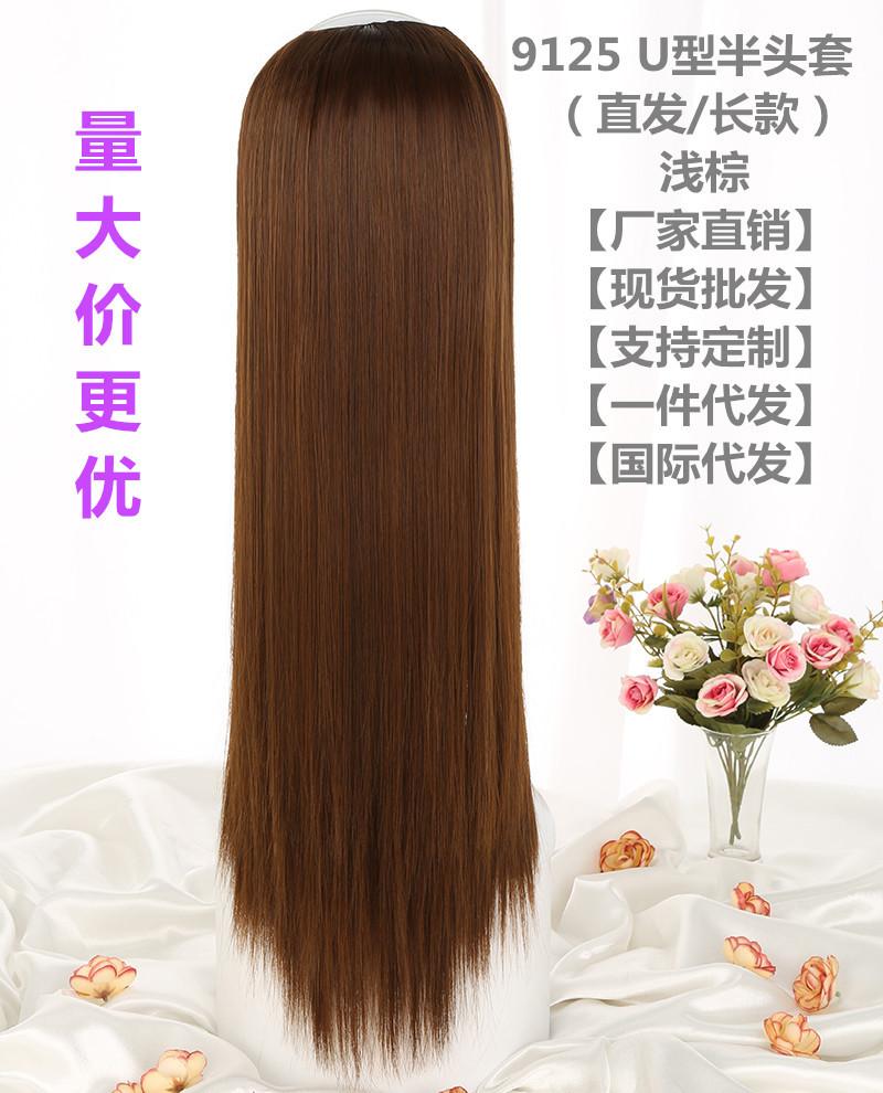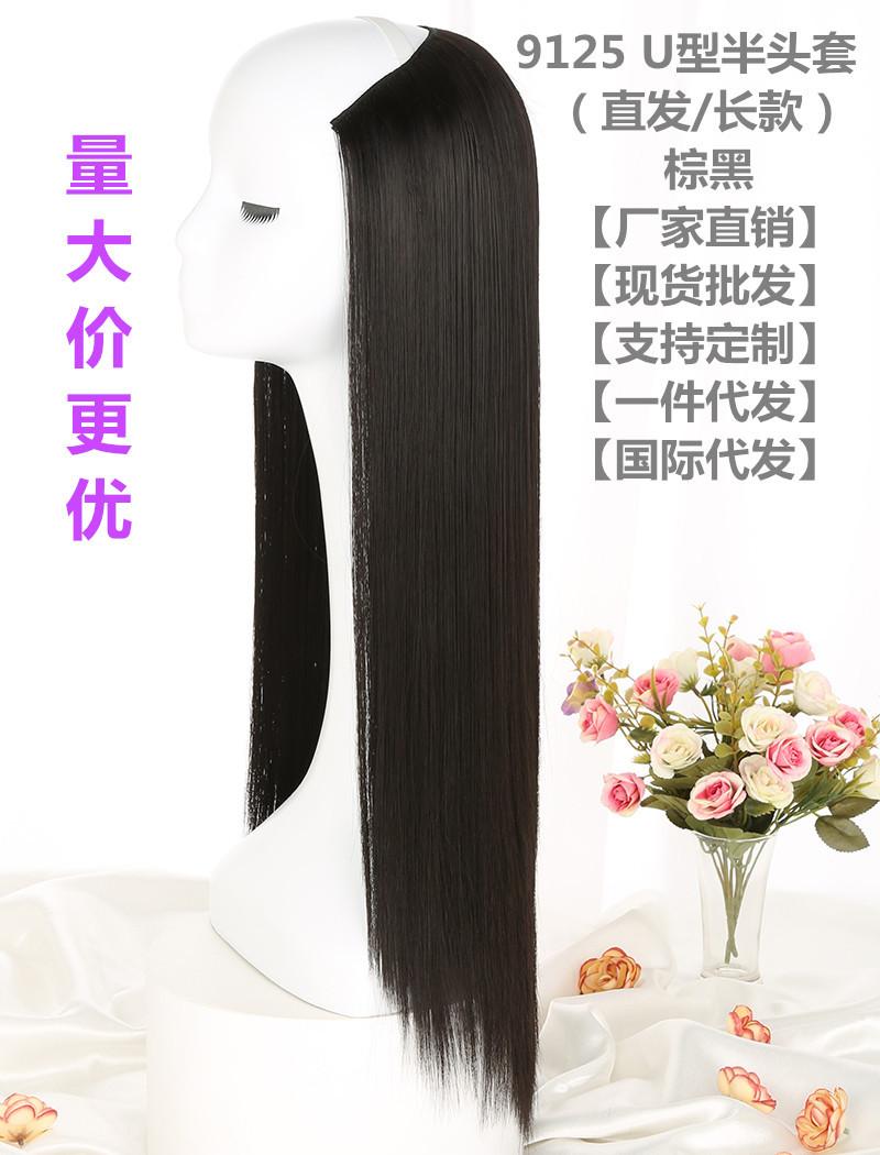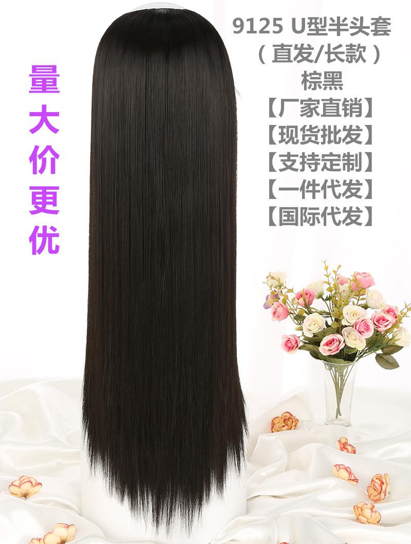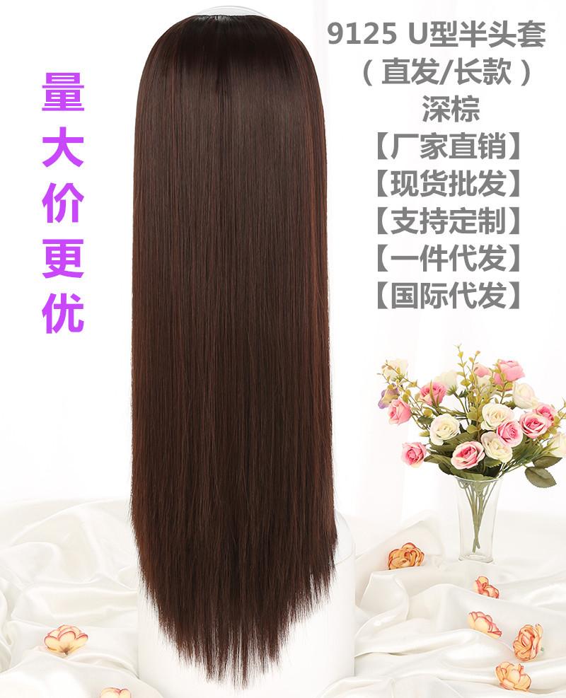 Nombre del producto:Pelucas para mujer cabello largo lacio pelucas de media cabeza en forma de U pelucas de fibra sintética