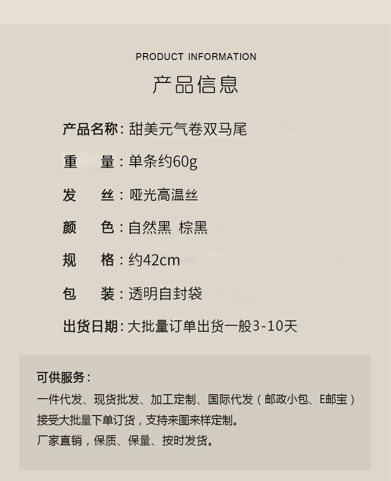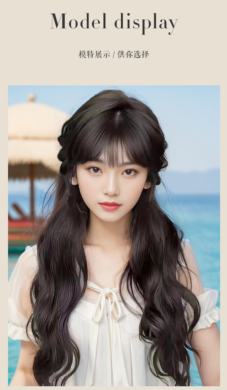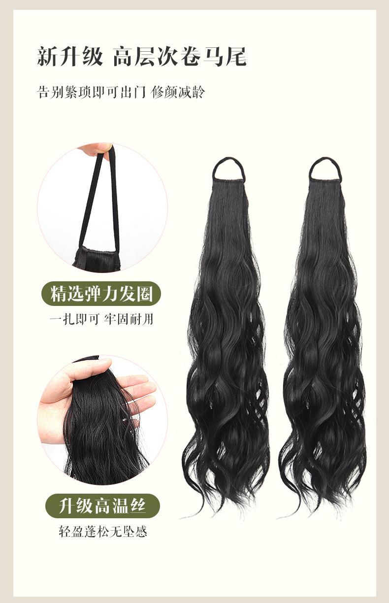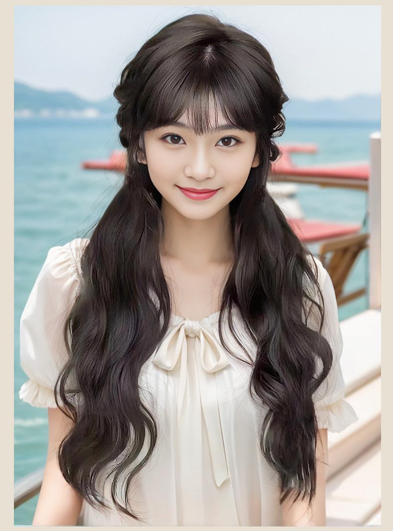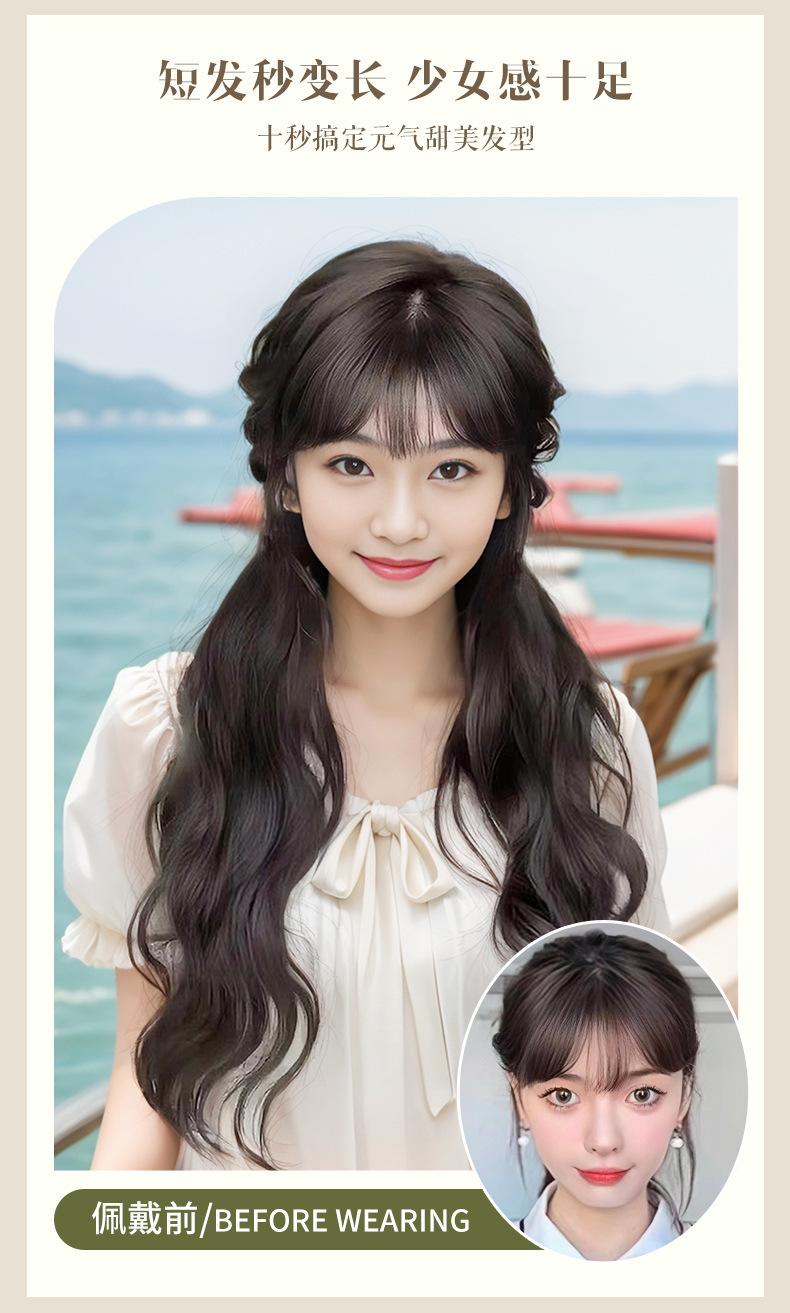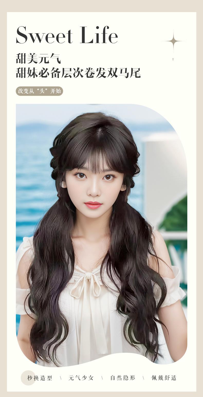 Peluca Vigor para Niña Cabello Largo Doble Cola de Caballo Dulce Esponjoso Natural Atado Bajo Tendón de Goma Ondas de Agua Doble Cola de Caballo
