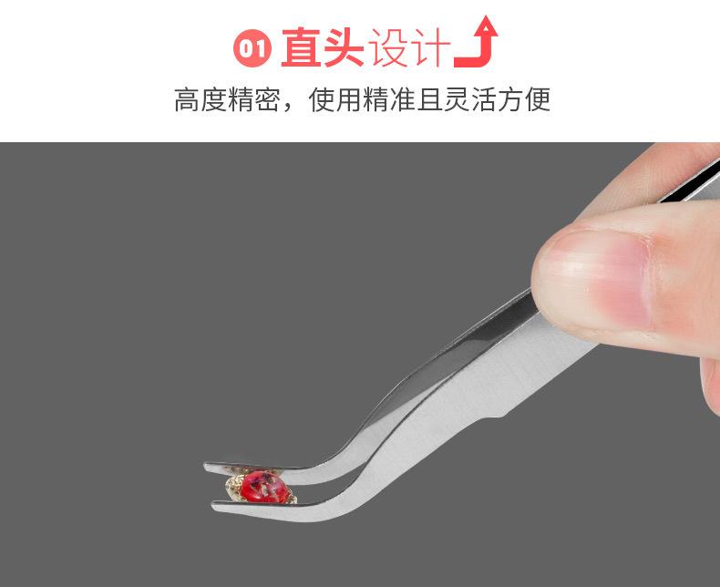 Pinzas de acero inoxidable de alta precisión para decoración de uñas, pinzas para cejas, pinzas para joyería, pinzas de codo rectas, taladro, herramientas para decoración de uñas