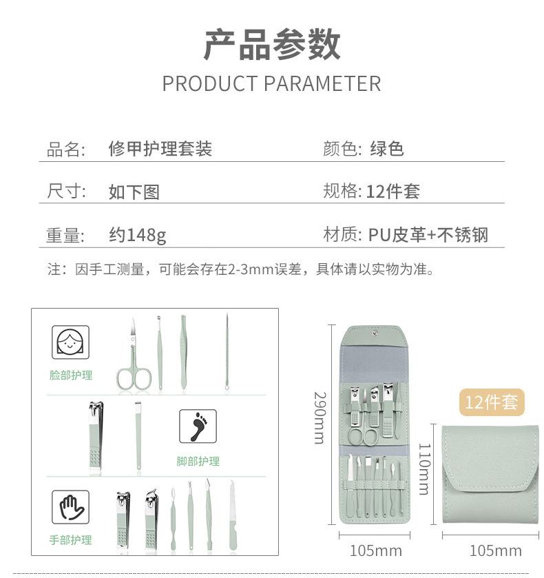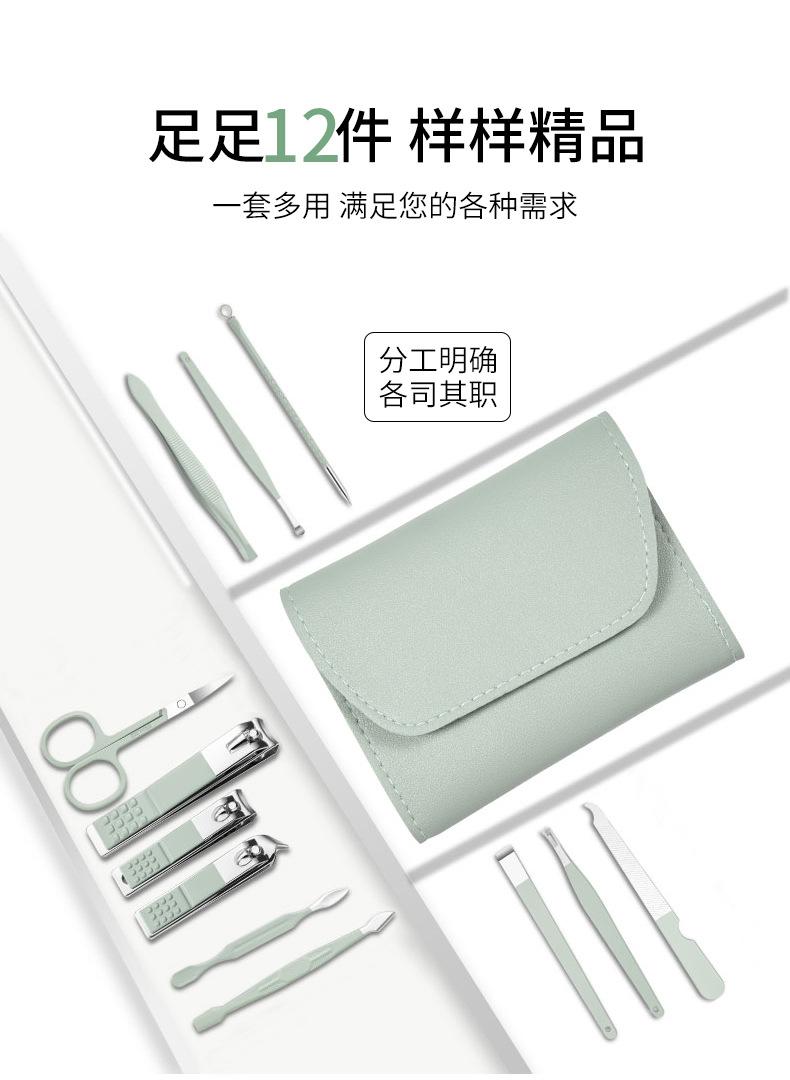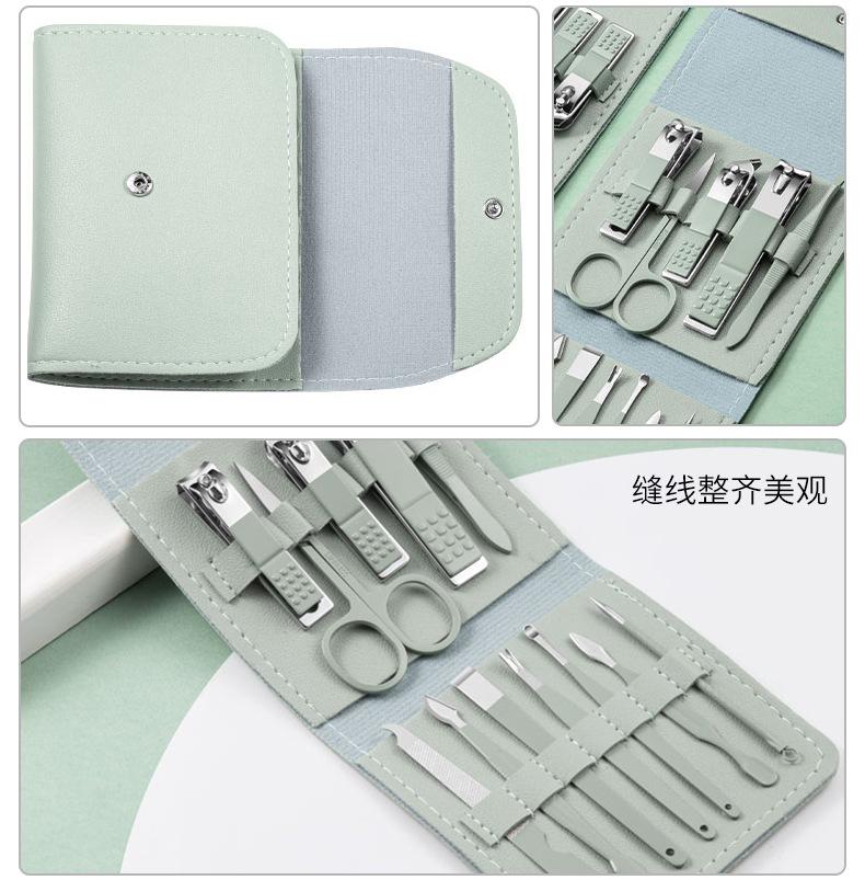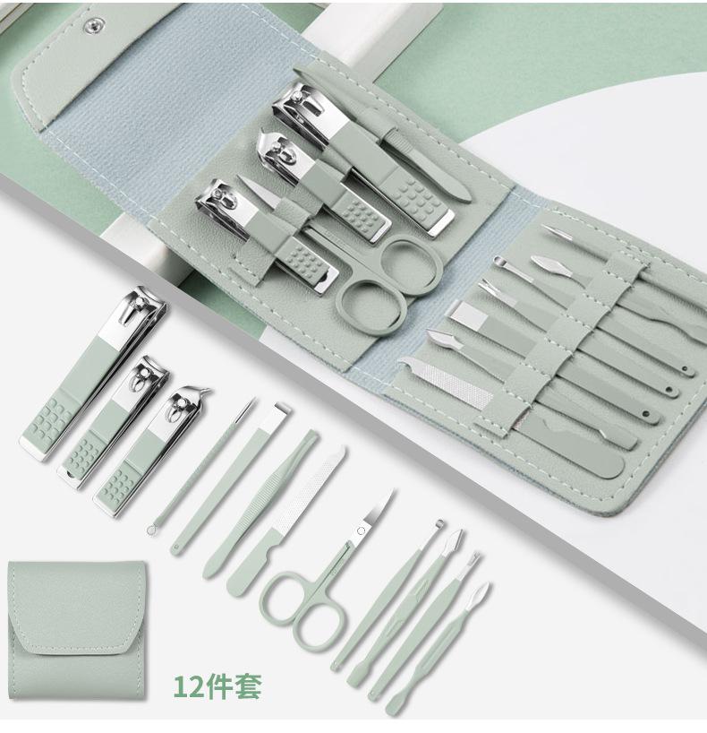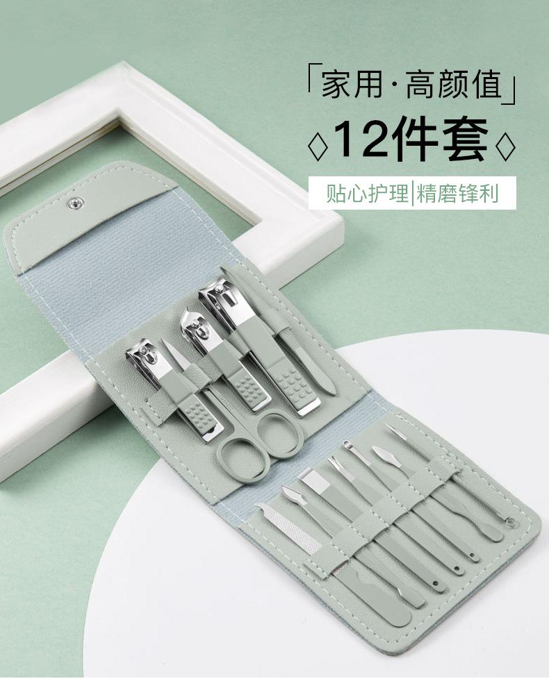 Juego de manicura de 12 piezas, multifuncional, para el cuidado de las uñas, cortauñas oblicuos de acero inoxidable para el hogar, cortauñas portátiles