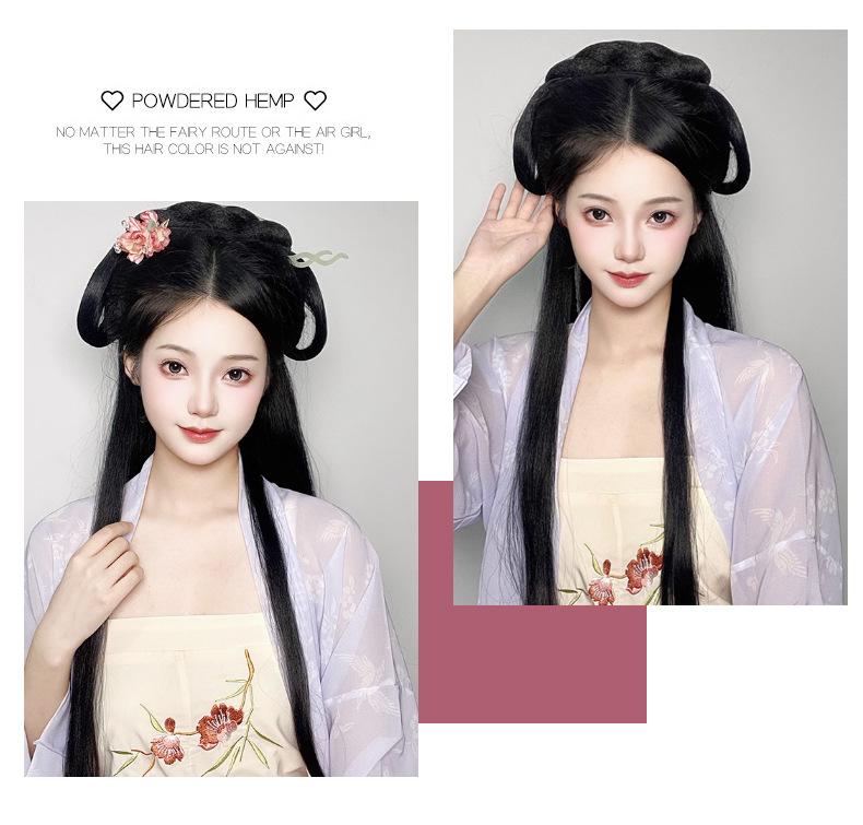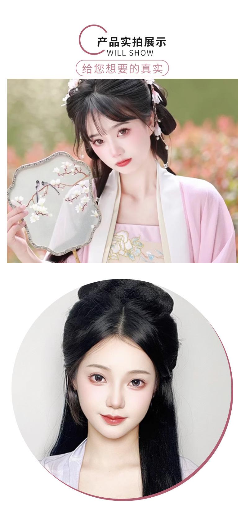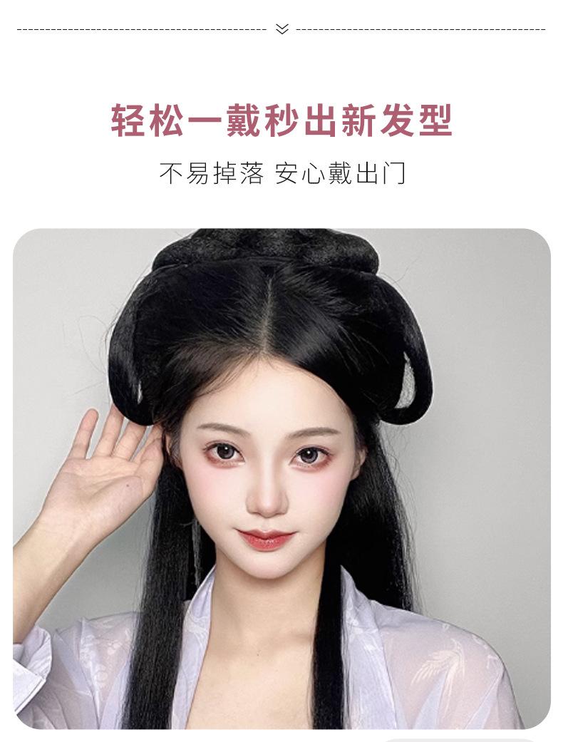 Peluca Hanfu, pieza de peluca, bolsa de pelo de una pieza, bolsa de pelo perezosa, tocado de estilo clásico, forma de tocado, recogido giratorio, pieza de pelo liso