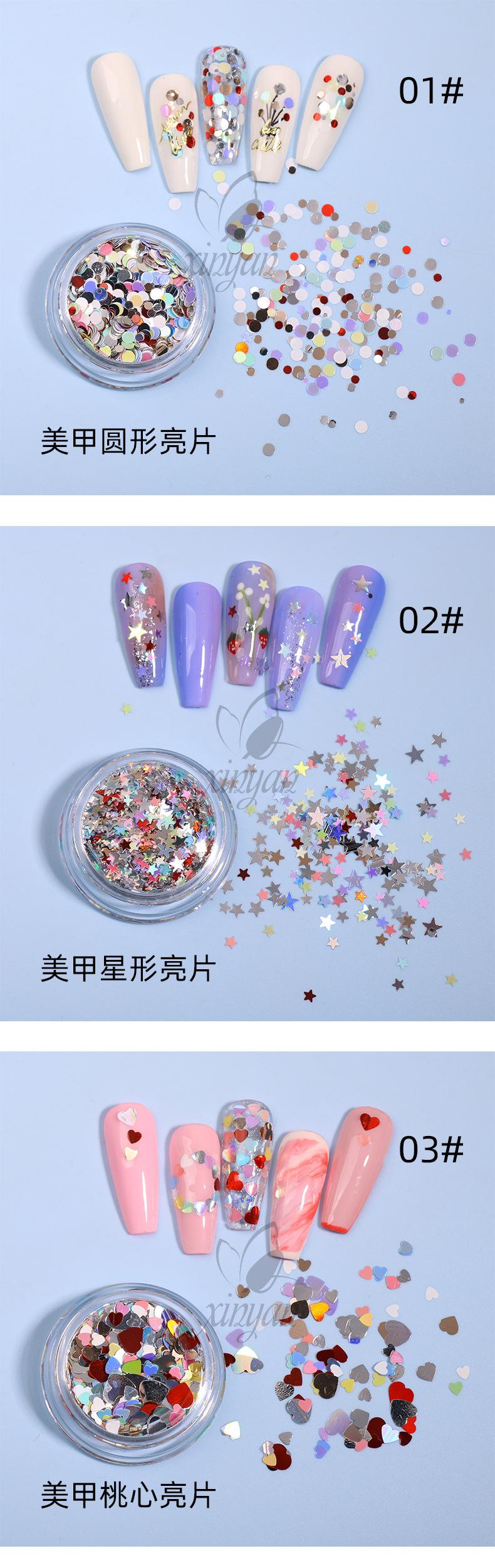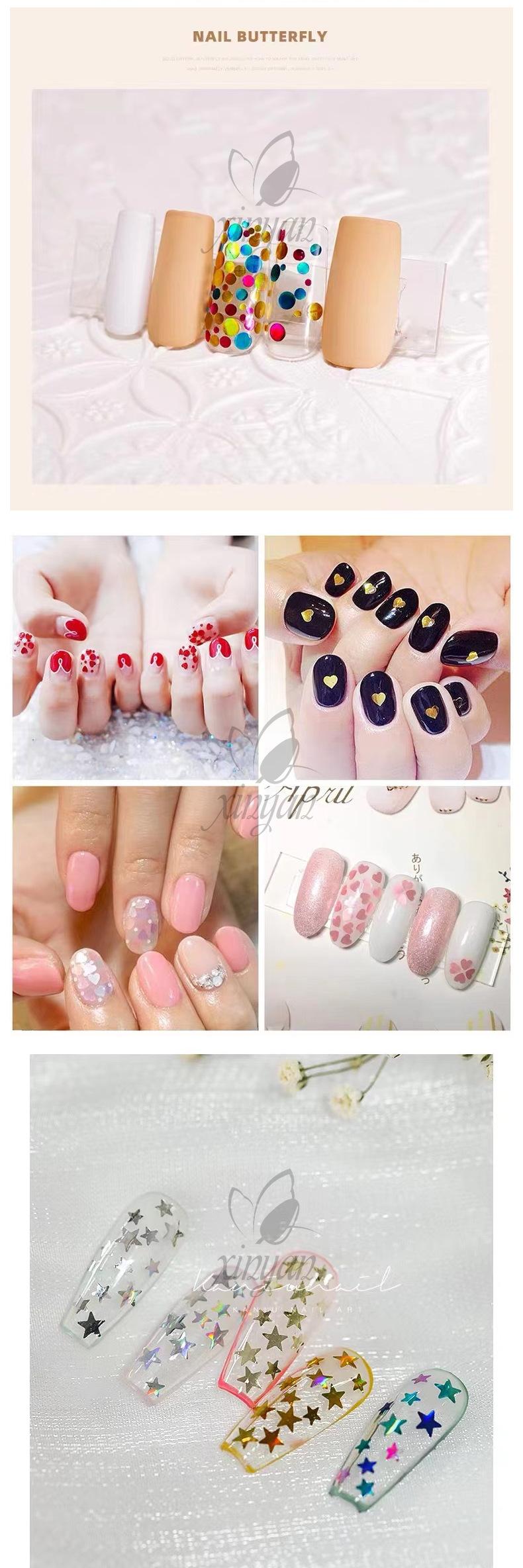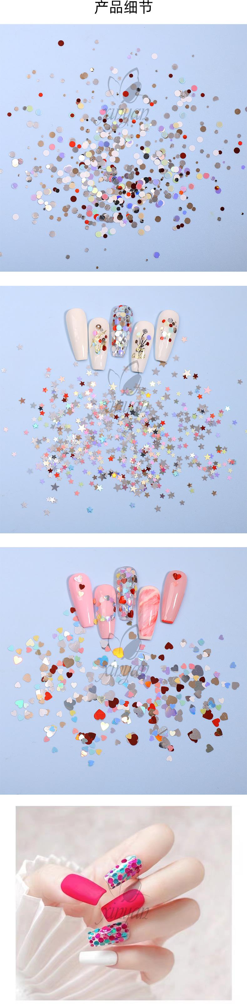 Nueva joyería para uñas, colores mixtos, conjunto de corazones, estrellas redondas, parches de lentejuelas de colores para uñas, decoración de uñas al por mayor