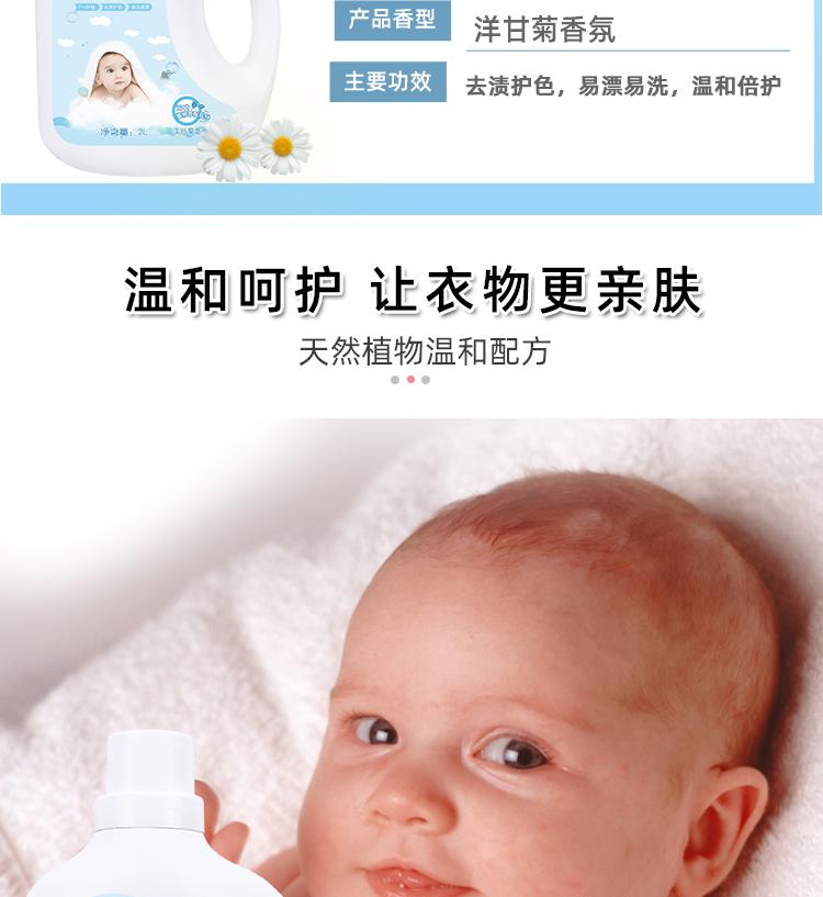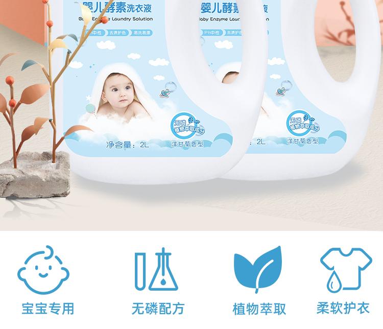 Detergente enzimático para ropa de bebés y niños, suave y agradable para la piel, 2 l, embotellado, con aroma a manzanilla, para ropa de niños.
