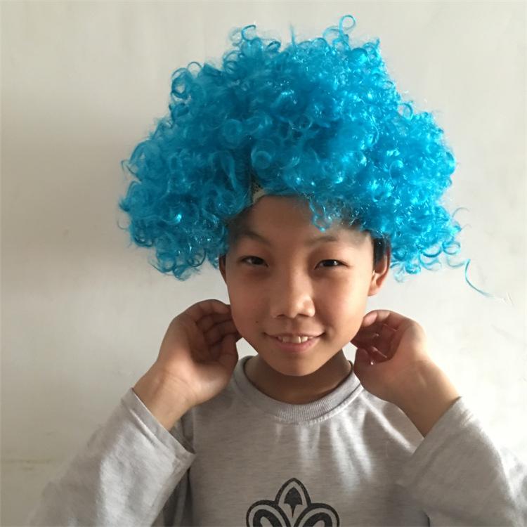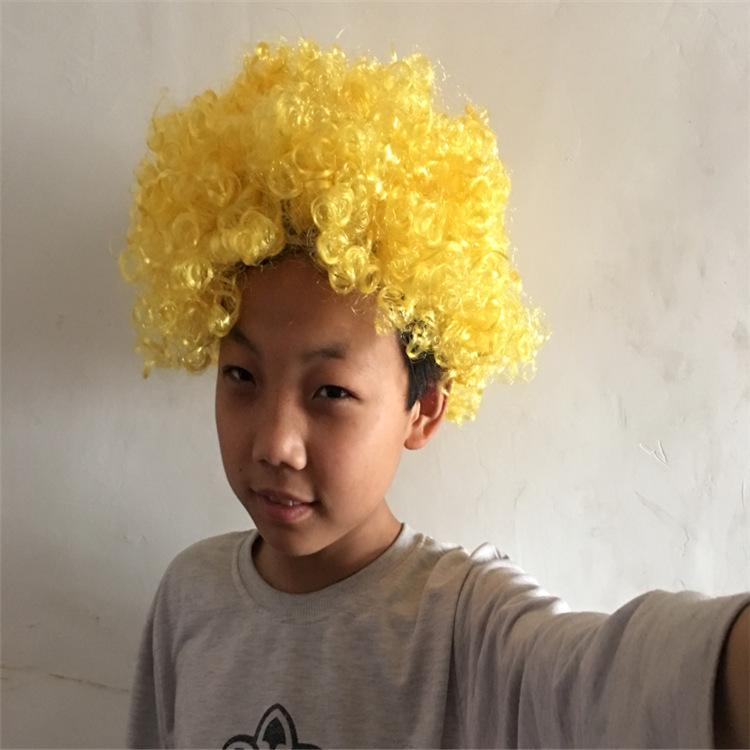 Las siguientes son fotos reales de una peluca afro de 120 g, diseñada según la circunferencia de la cabeza de un adulto, con bandas elásticas en el interior, adecuada tanto para adultos como para niños.