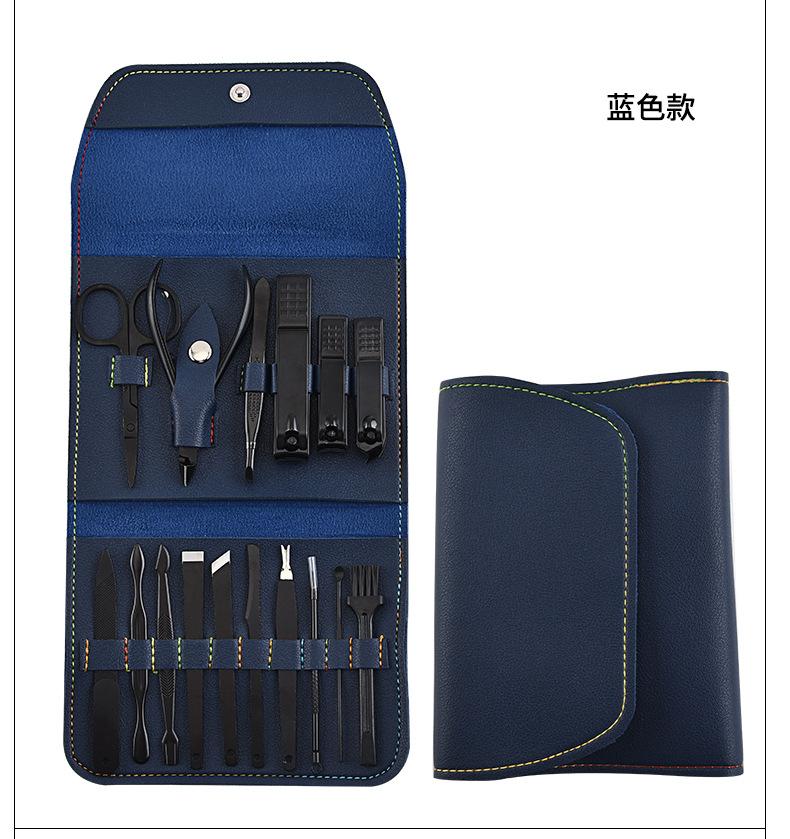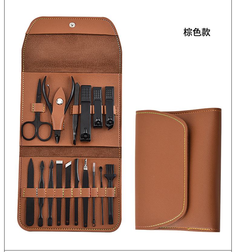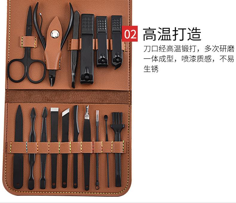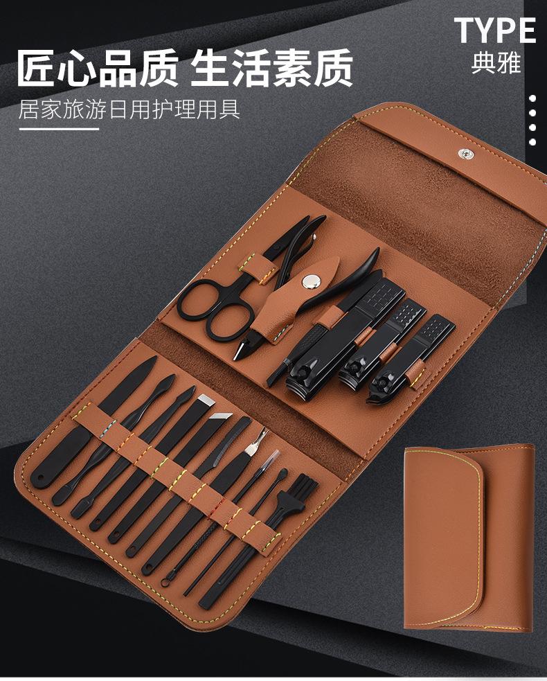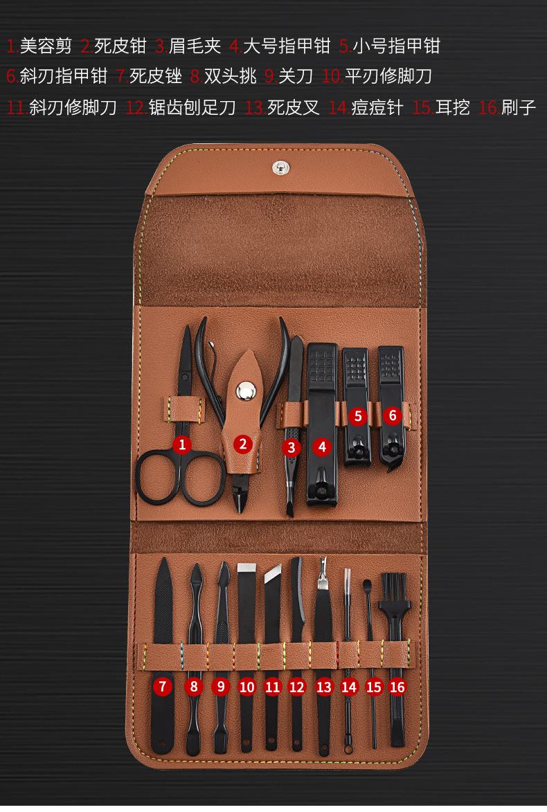 Ventas Directas de Fábrica Set Negro de 16 Piezas Cortauñas Tijeras para Uñas Herramientas de Manicura Bolsa Plegable Set de Cortauñas al Mayoreo