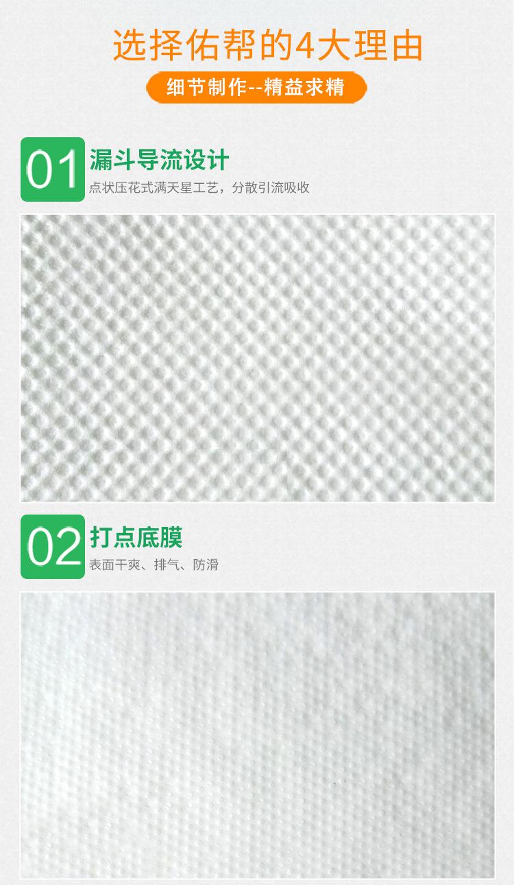【Introducción del Producto】: ●Absorción rápida: Adoptando una estructura de absorción de polímero mixto y pulpa de celulosa, la absorción y la condensación son rápidas y suficientes, y es realmente anti-filtraciones y anti-fugas. ●Suave, transpirable y seco: Capa superficial no tejida, suave y transpirable, previene la filtración posterior y protege la piel de la sequedad y la naturalidad. ●Capa de desviación de filtración rápida: La capa de desviación diseñada de forma única guía la orina para que se difunda hacia adelante y hacia atrás, se filtra y absorbe rápidamente, dejando la capa superficial más seca.