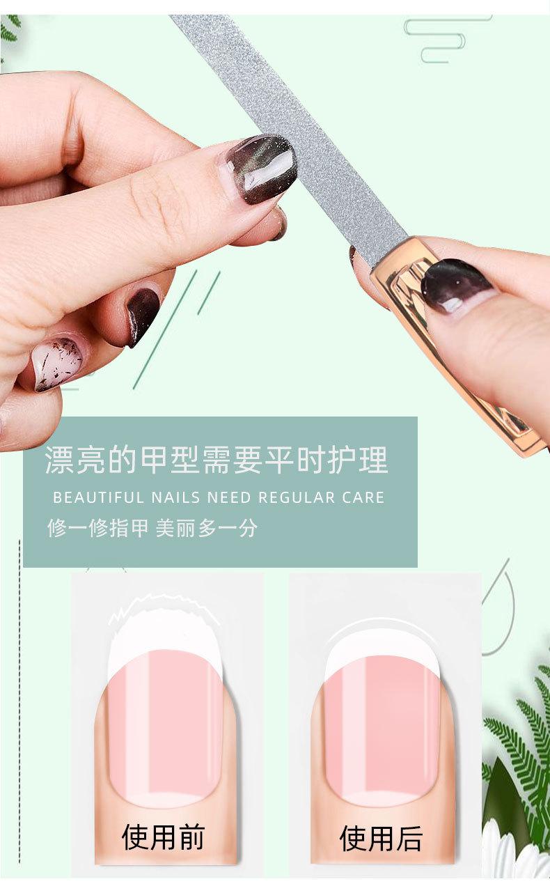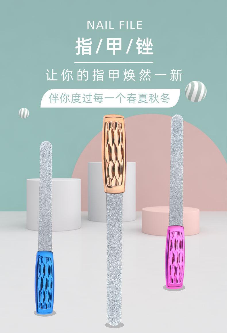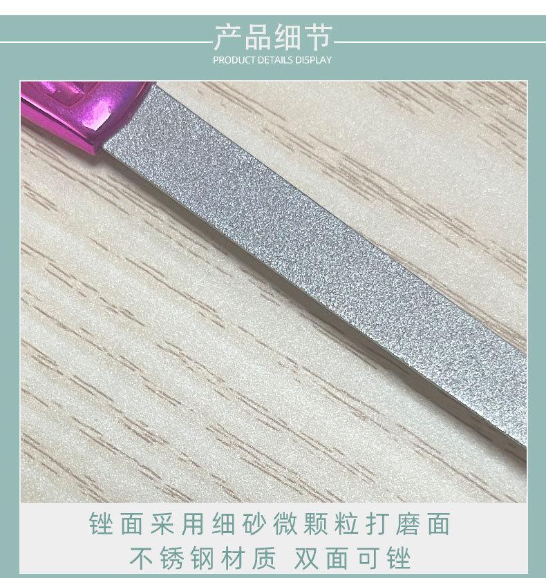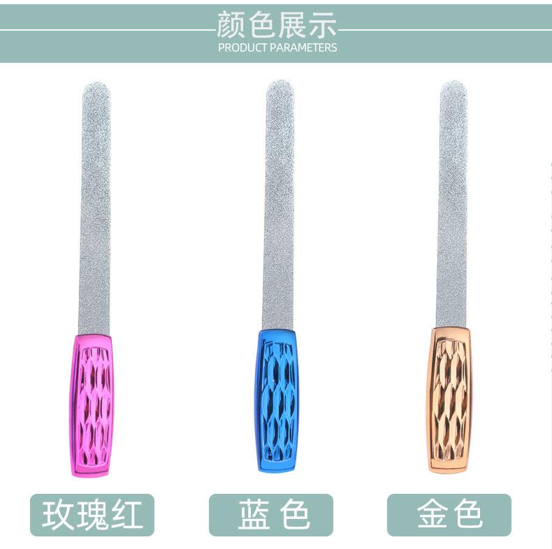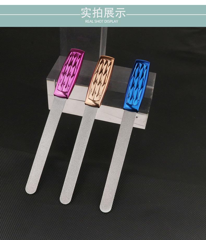 Lima de uñas de acero inoxidable de fábrica, lima de uñas galvanizada, lima de uñas de doble cara, herramienta para pulir uñas.