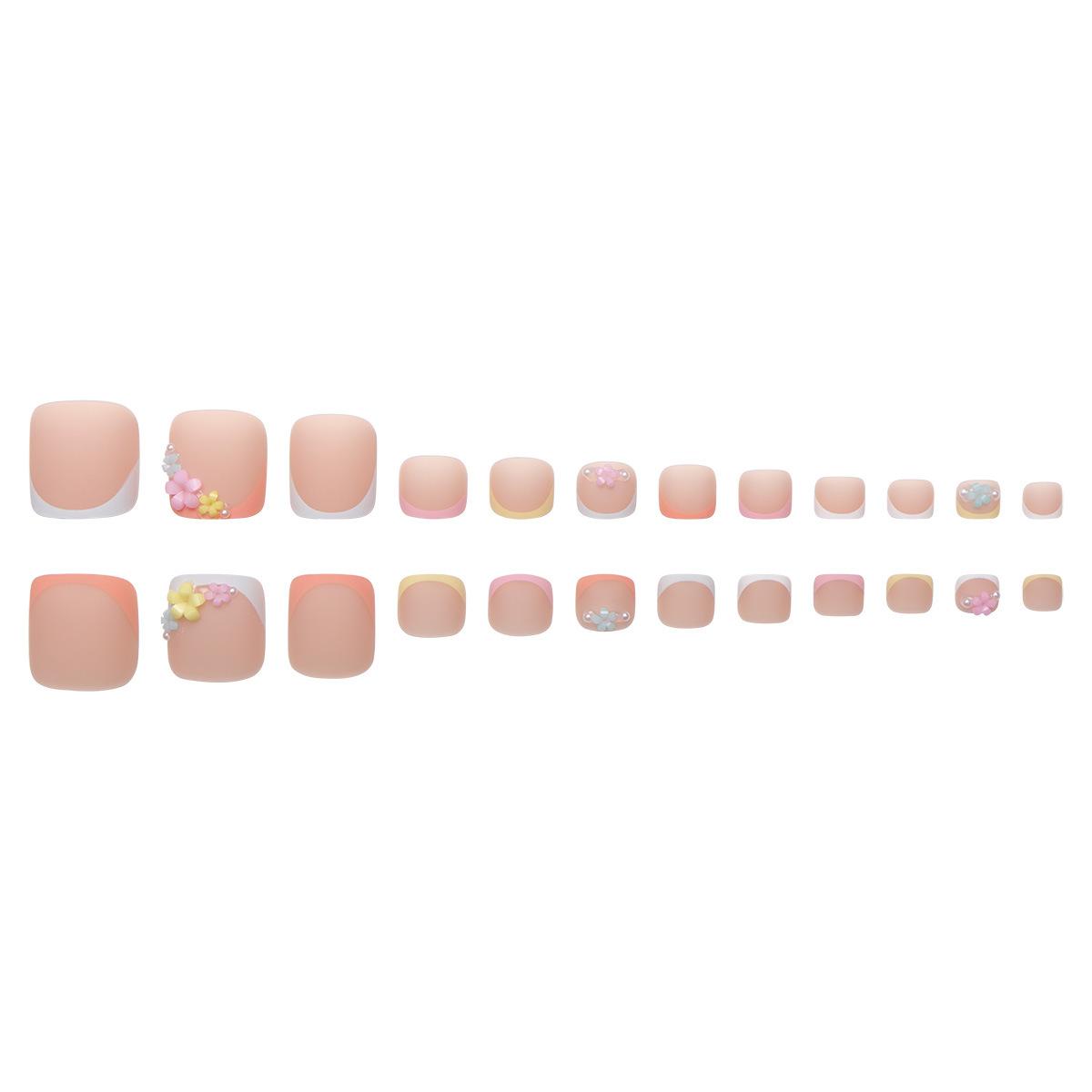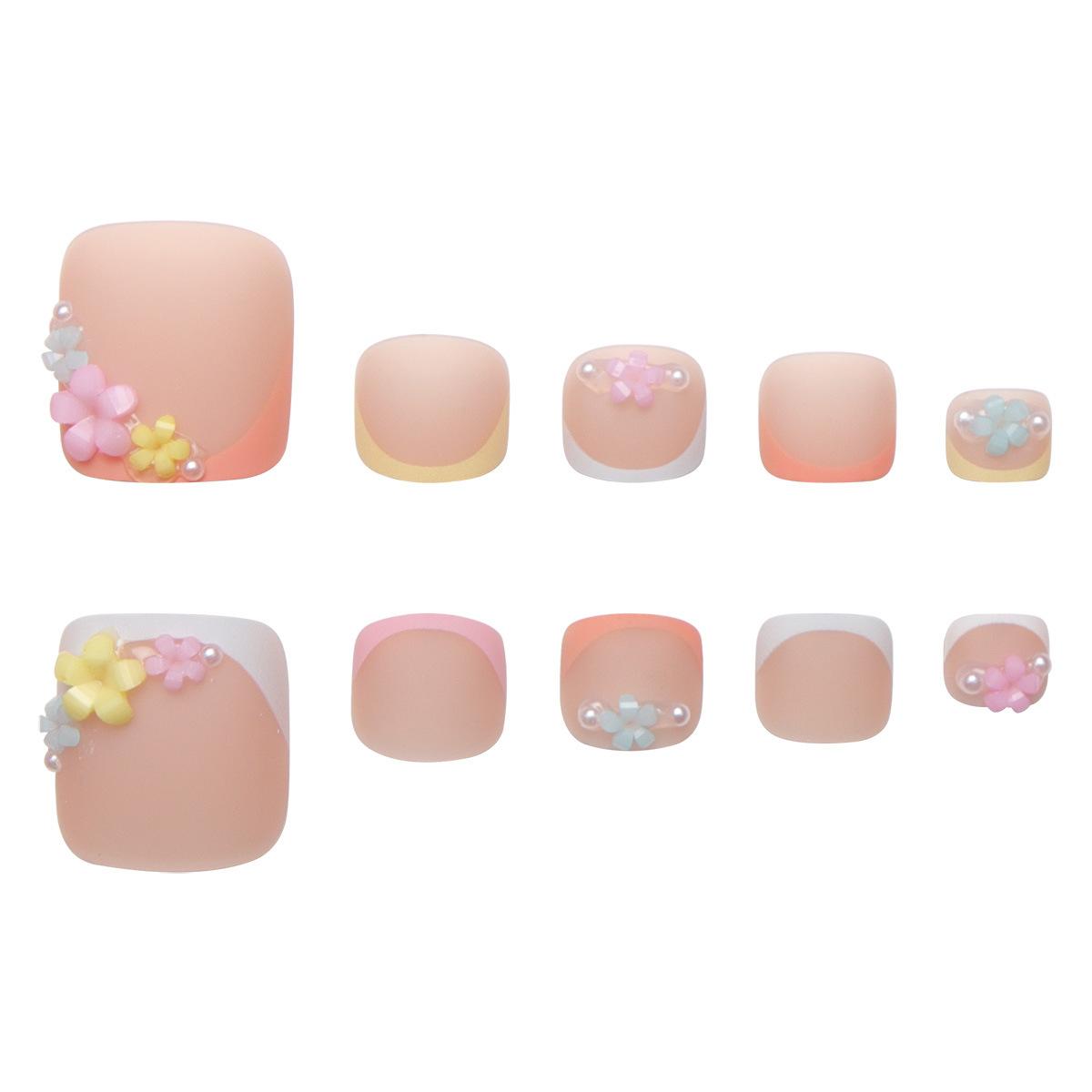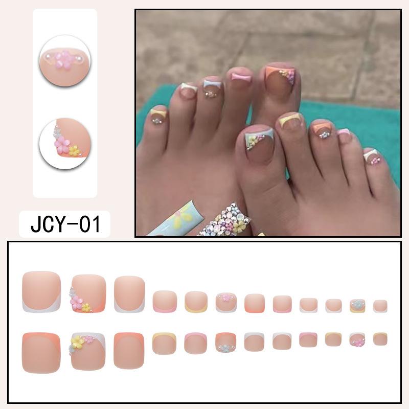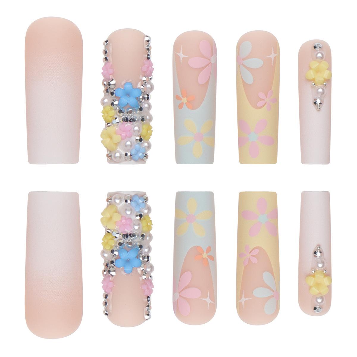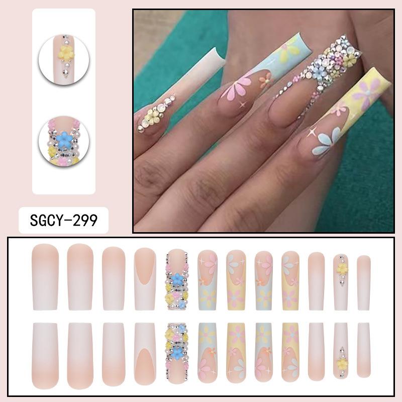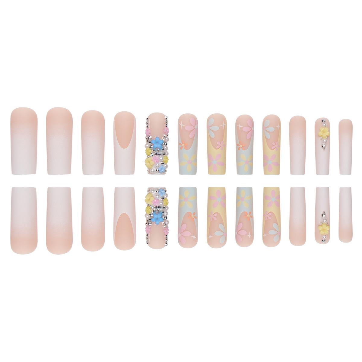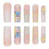 Europa y Estados Unidos usan uñas postizas francesas largas con parches de flores de diamantes de colores para uñas postizas terminadas al por mayor