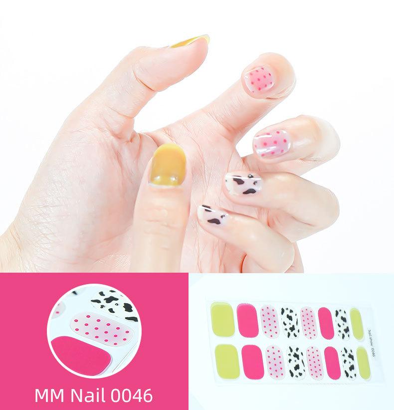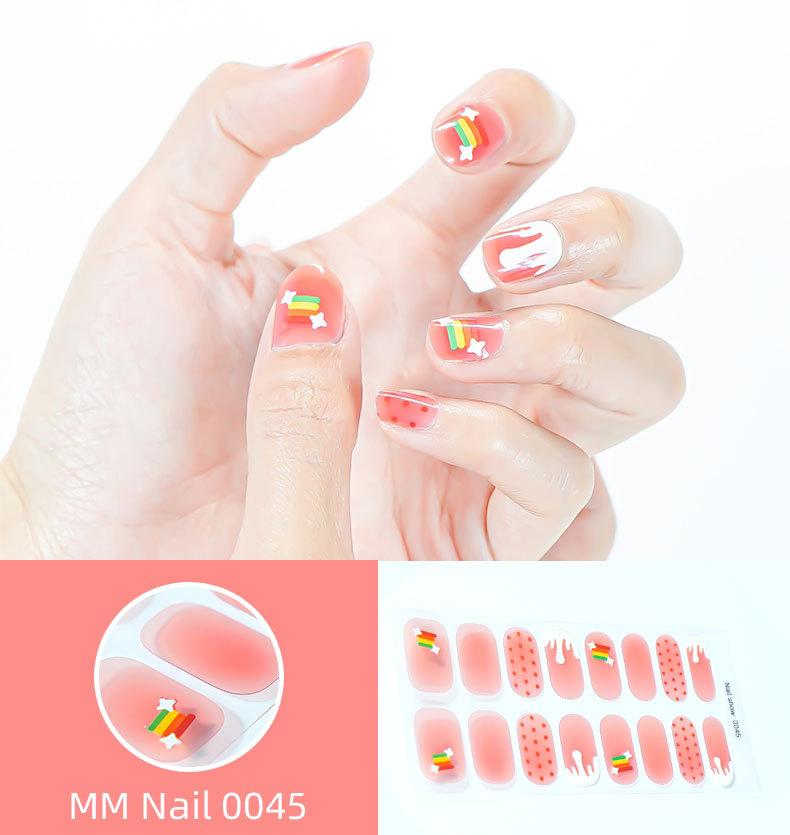 Nuevas pegatinas para uñas completas de 16 dedos, pegatinas para uñas pequeñas, frescas y lindas, impermeables, película de esmalte de uñas, pegatinas para uñas en stock al por mayor