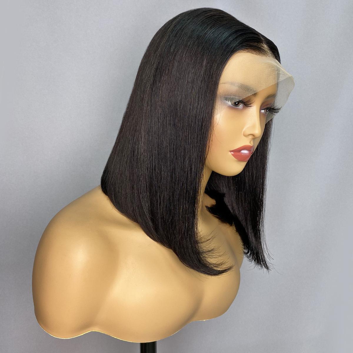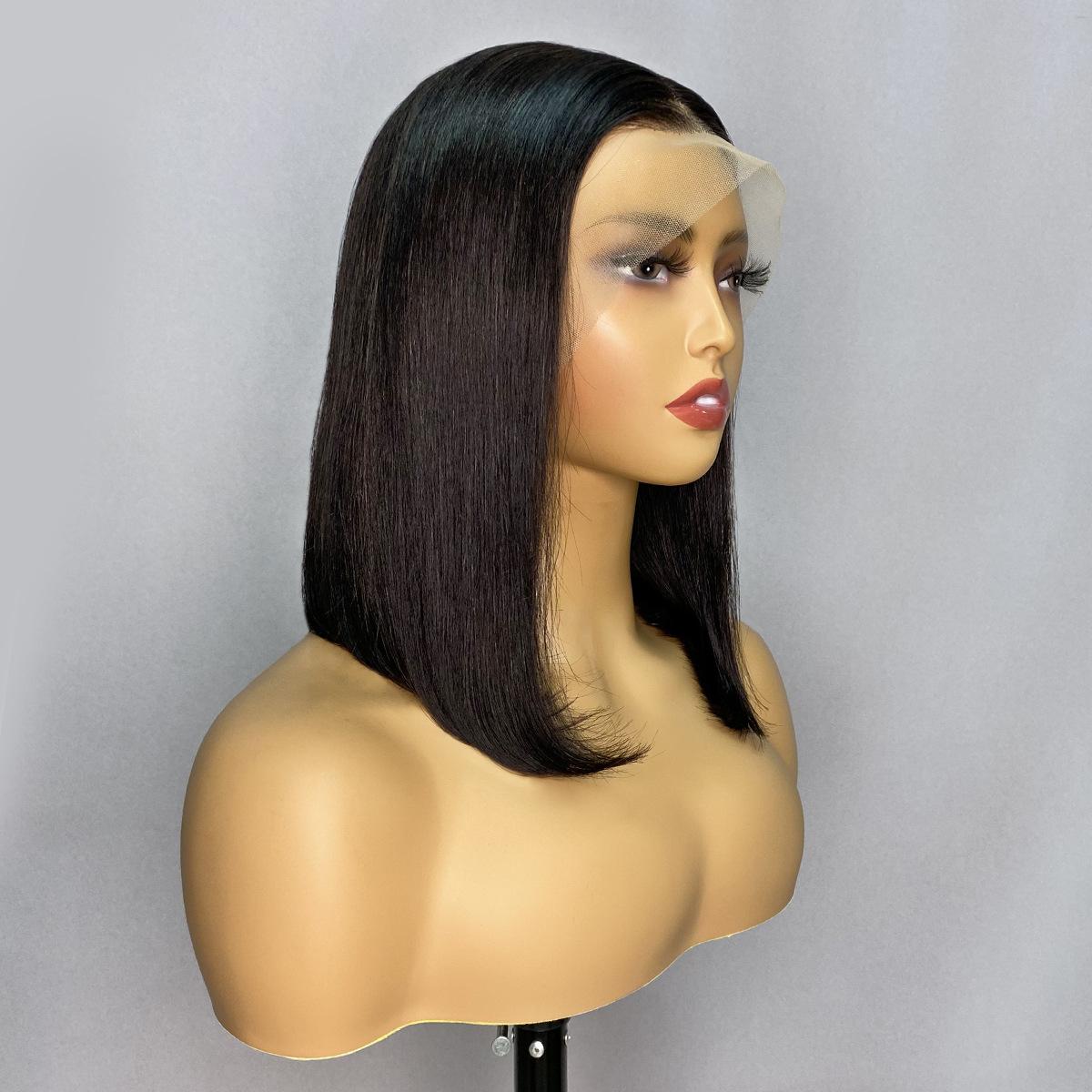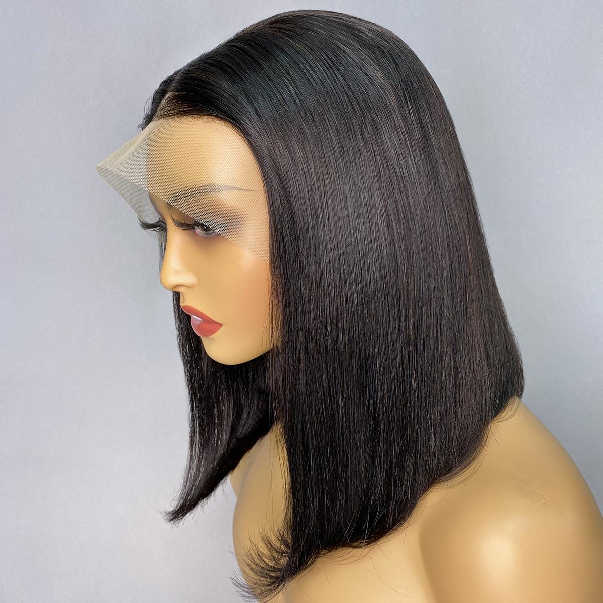 Peluca de cabello humano real color natural Bob con cubierta para la cabeza, encaje HD 4x4 13x4, peluca de encaje frontal, cabello humano real