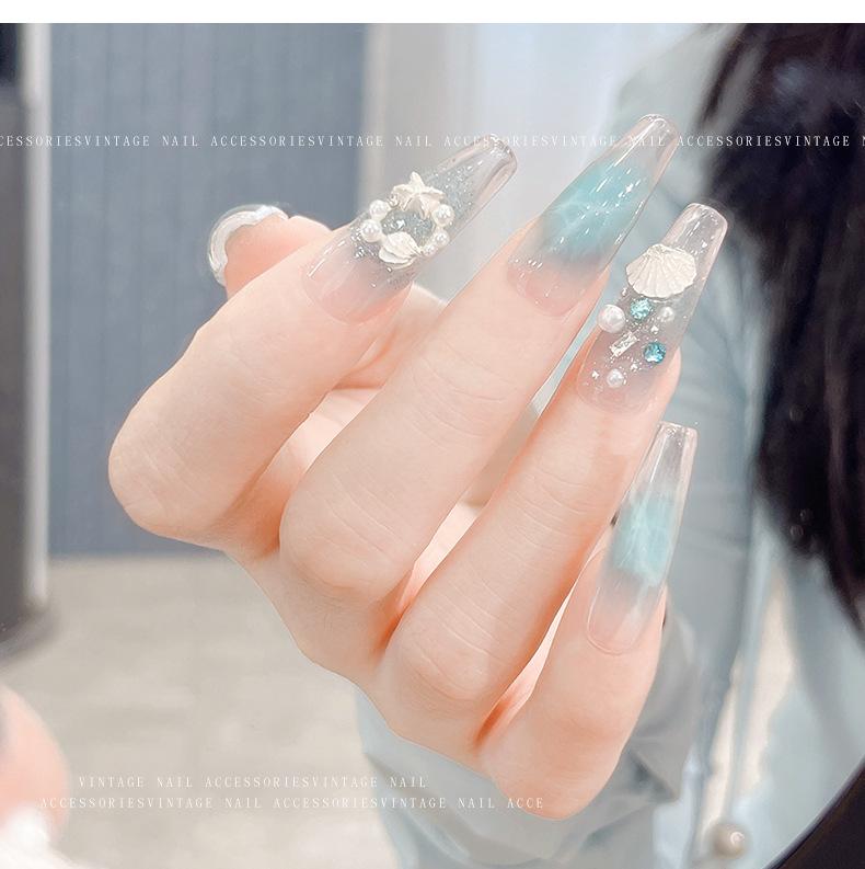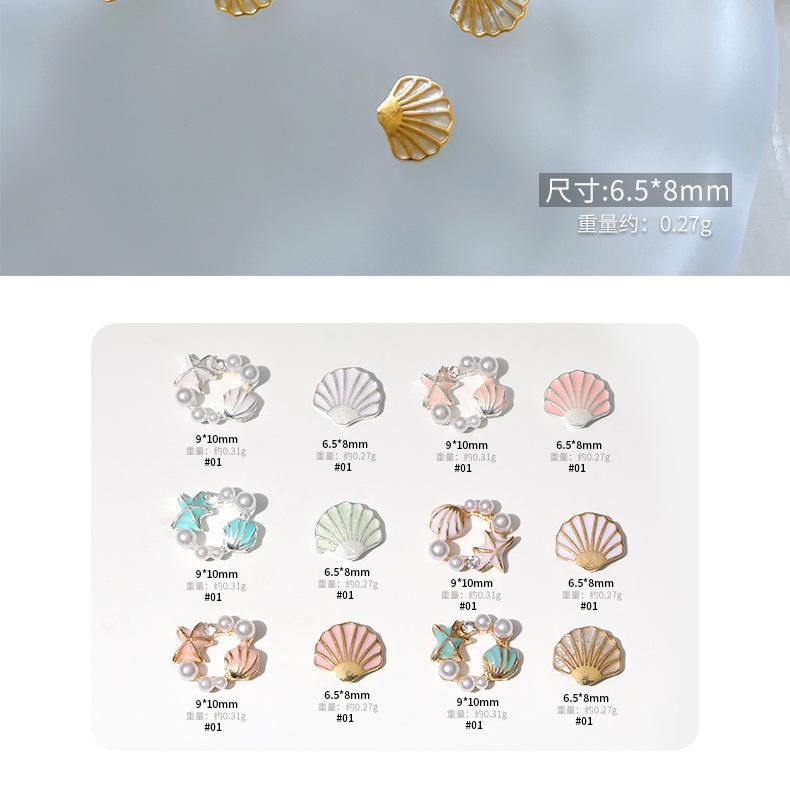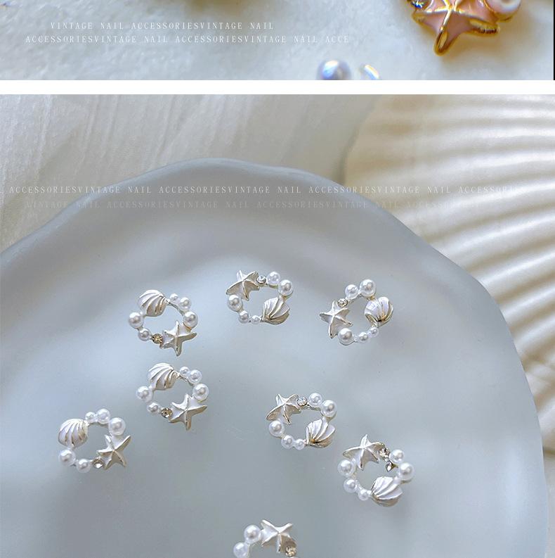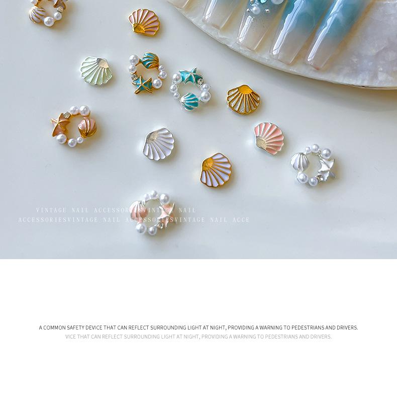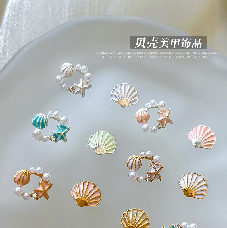 Nueva joyería para uñas con concha de perla, corona de vieira de color tridimensional, accesorios para uñas de aleación de perla