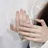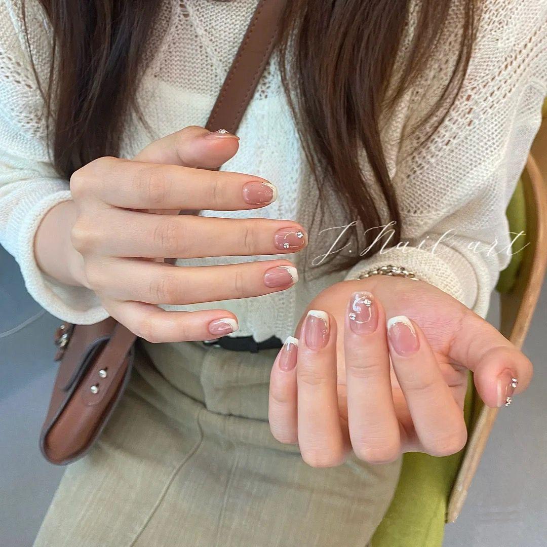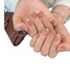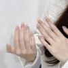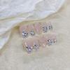 Uñas con acabado hecho a mano, para usar uñas cortas con borde francés, con destellos de diamante, parches de lujo para uñas, para otoño e invierno avanzados