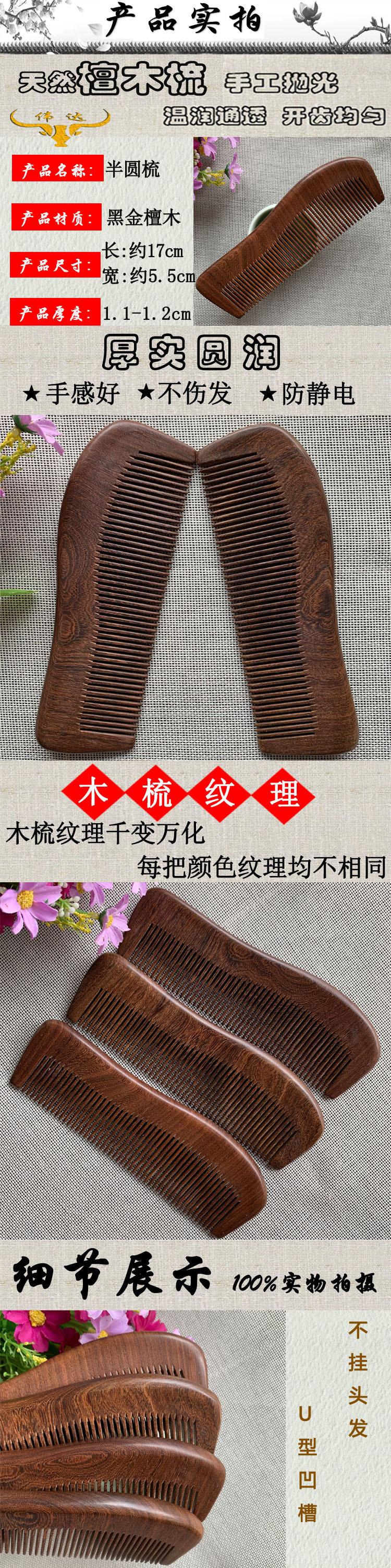 Sándalo negro dorado sándalo de borde claro peine de sándalo semicírculo largo sándalo peine artesanal peine de cuerno procesamiento de fábrica
