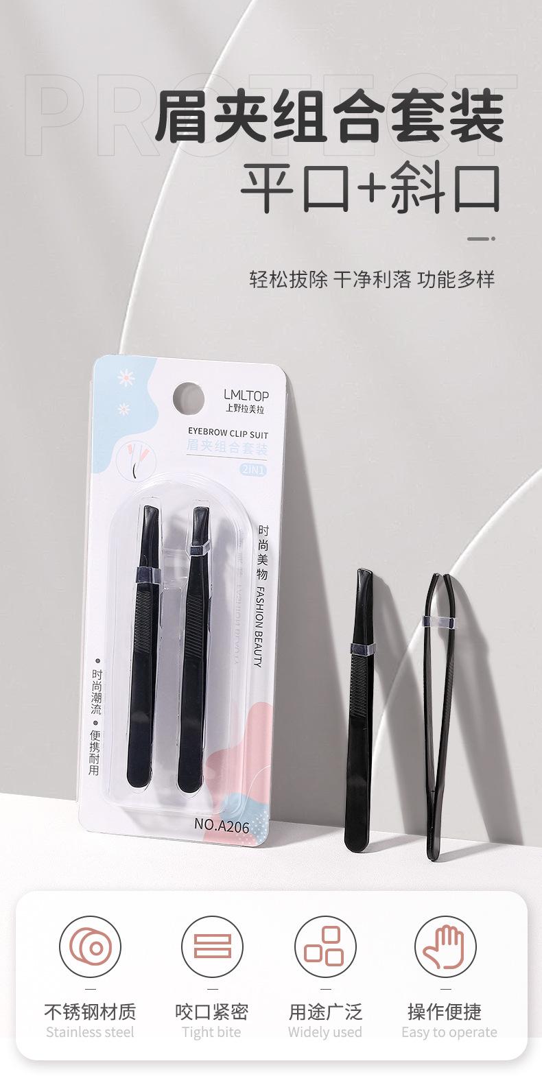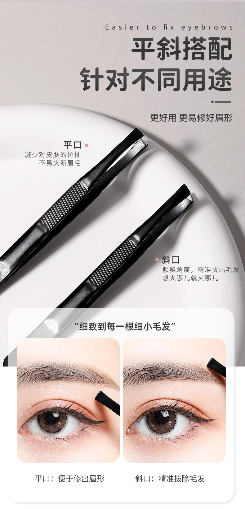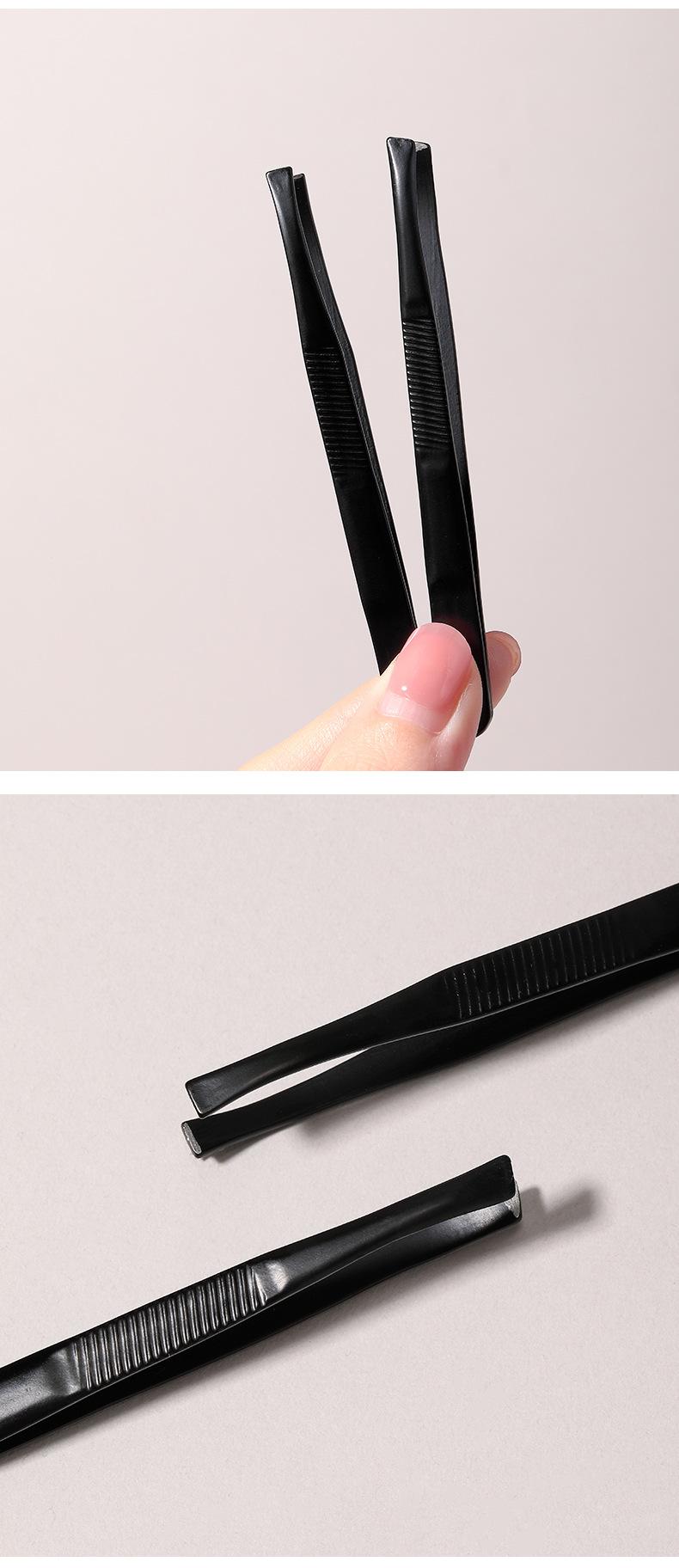 Lmltop Set de Pinzas para Cejas Negras Acero Inoxidable Pinzas para Cejas Boca Oblicua Plana Pinzas para Cejas 2 Piezas A206