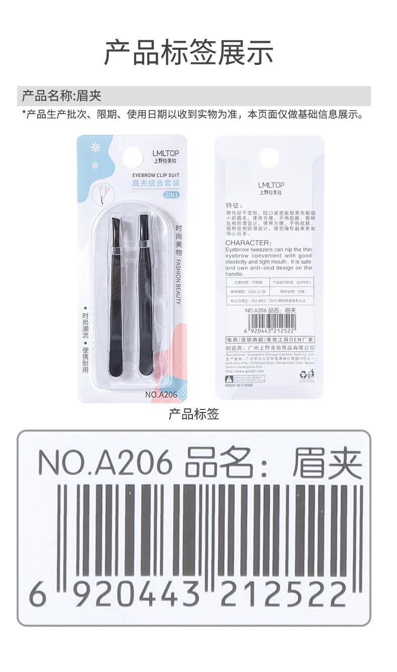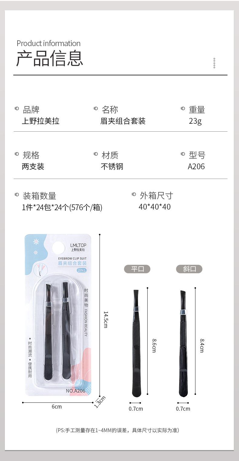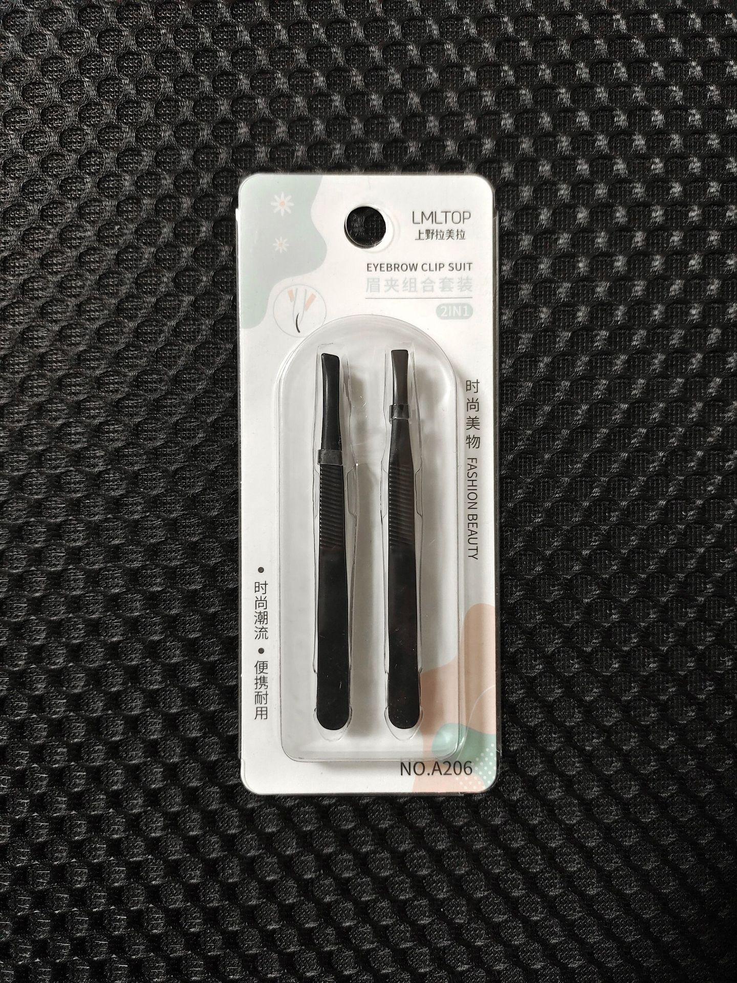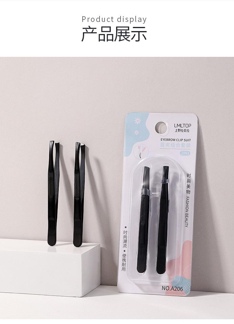 Lmltop Set de Pinzas para Cejas Negras Acero Inoxidable Pinzas para Cejas Boca Oblicua Plana Pinzas para Cejas 2 Piezas A206