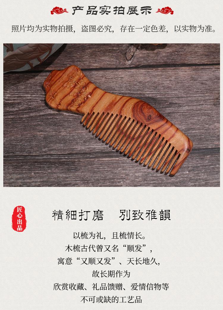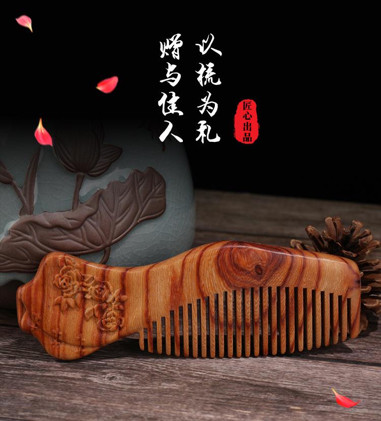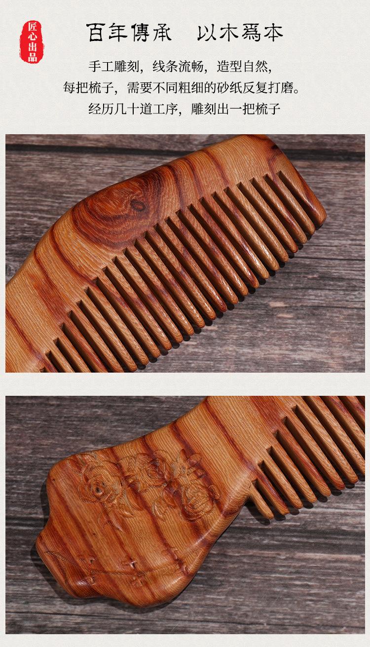 Peine de sándalo verde tallado a mano de madera natural entera, peine de estilo retro, peine de generación de cabello, logotipo personalizable