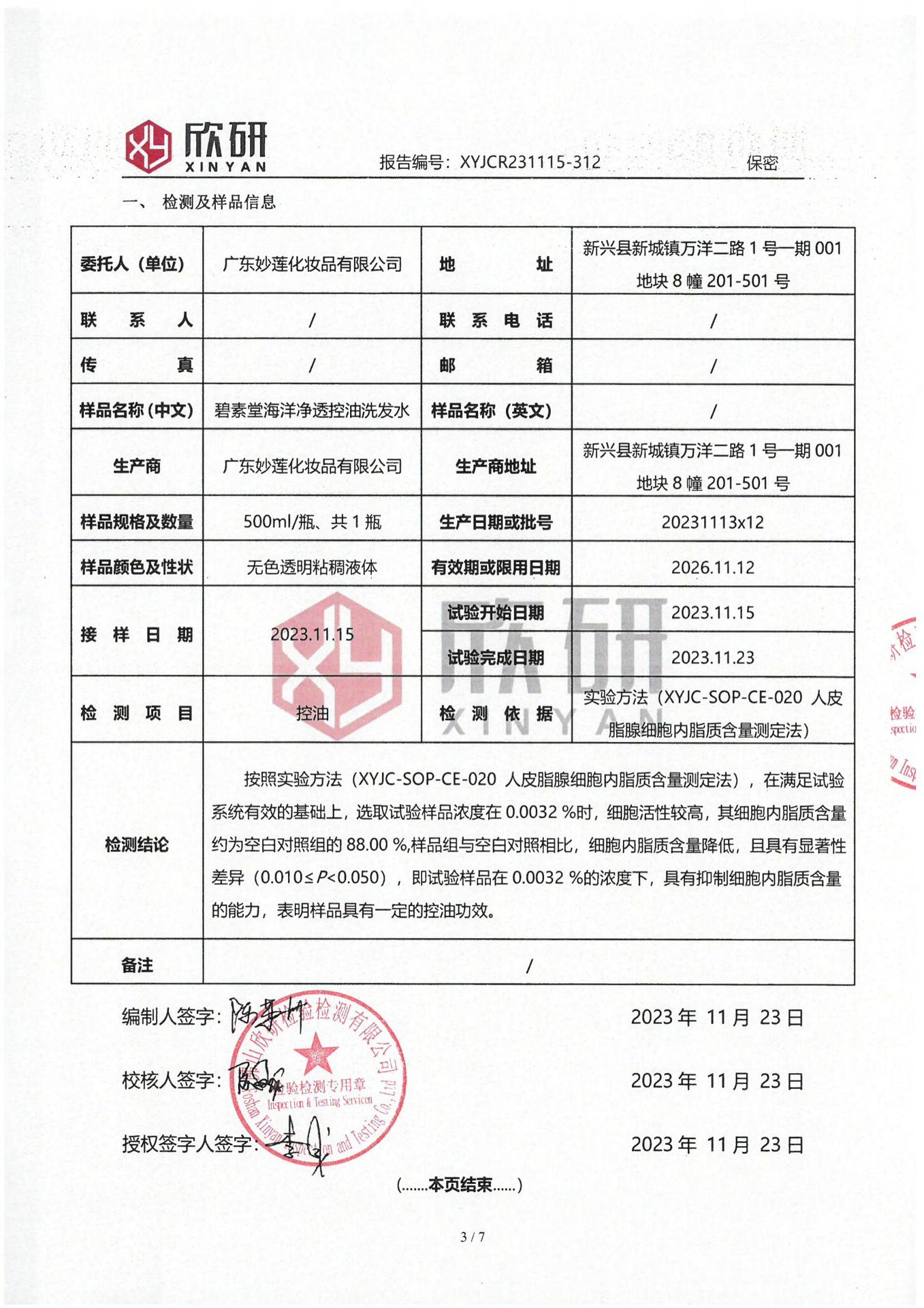 500ml shampoo Normal specifications
