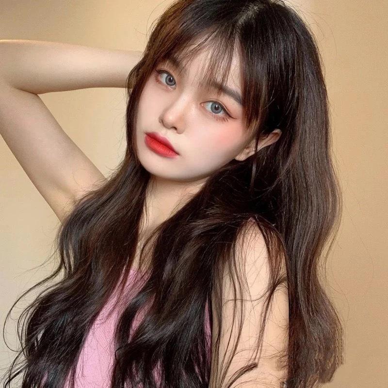 Peluca Lolita Femenina Cabello Largo Natural Cobertura Completa Esponjosa Moldeadora de Rostro Onda Grande Cos Cabello Rizado Largo con Flequillo