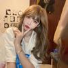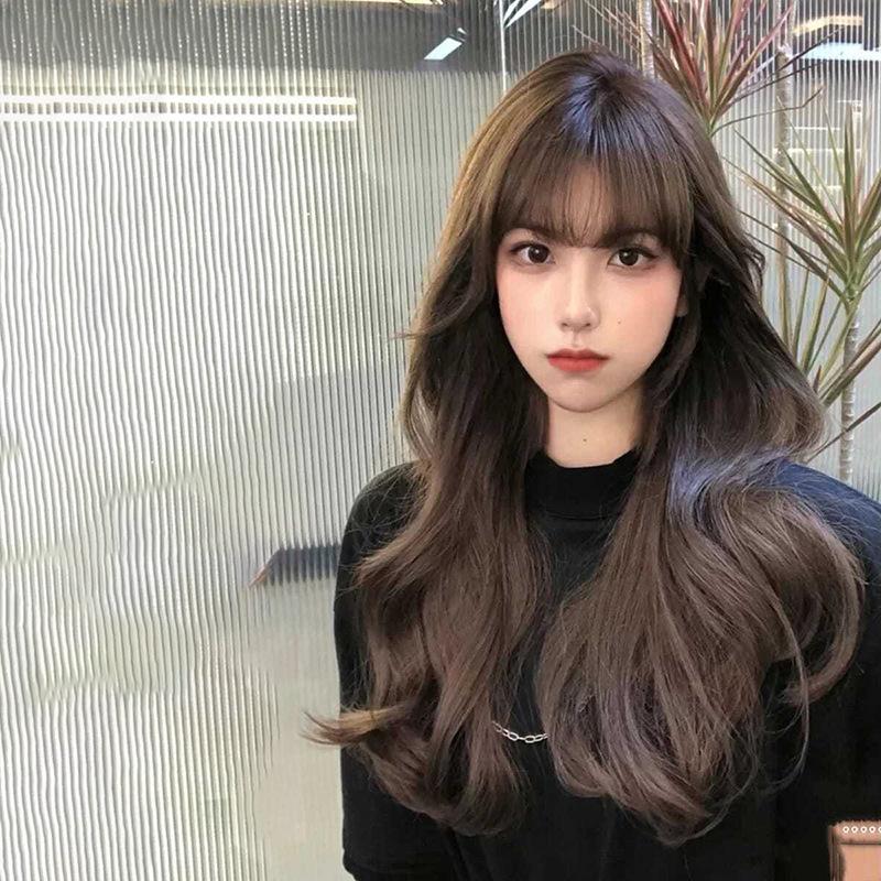 Long curly hair neat bangs