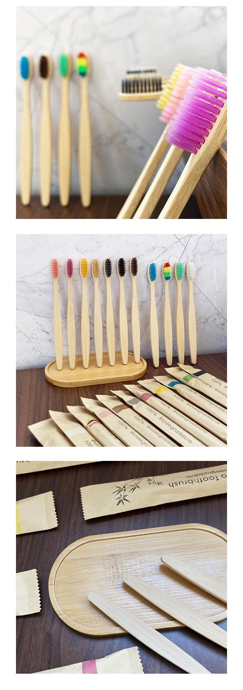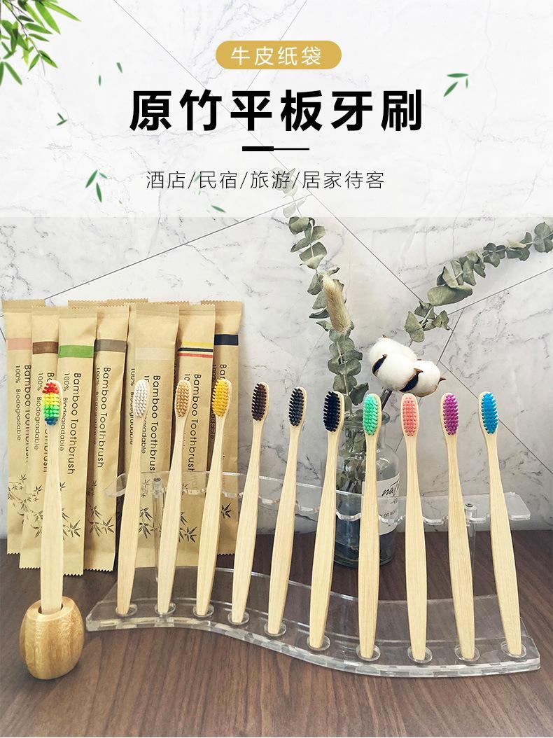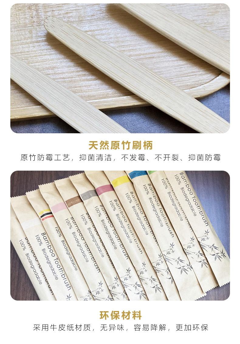 Cepillo de dientes de bambú biodegradable transfronterizo de comercio exterior, bolsa de papel Kraft, cepillo de dientes de bambú, respetuoso con el medio ambiente, cepillo de dientes de carbón de bambú para adultos, cabello suave